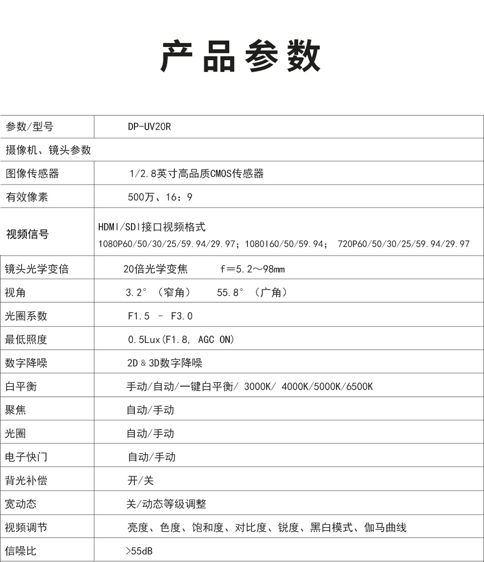 戴浦视频会议摄像头高清视频会议广角摄像头腾讯会议视频会议设备系统20倍变焦HDMI+SDI+网口 DP-UV20R 黑色