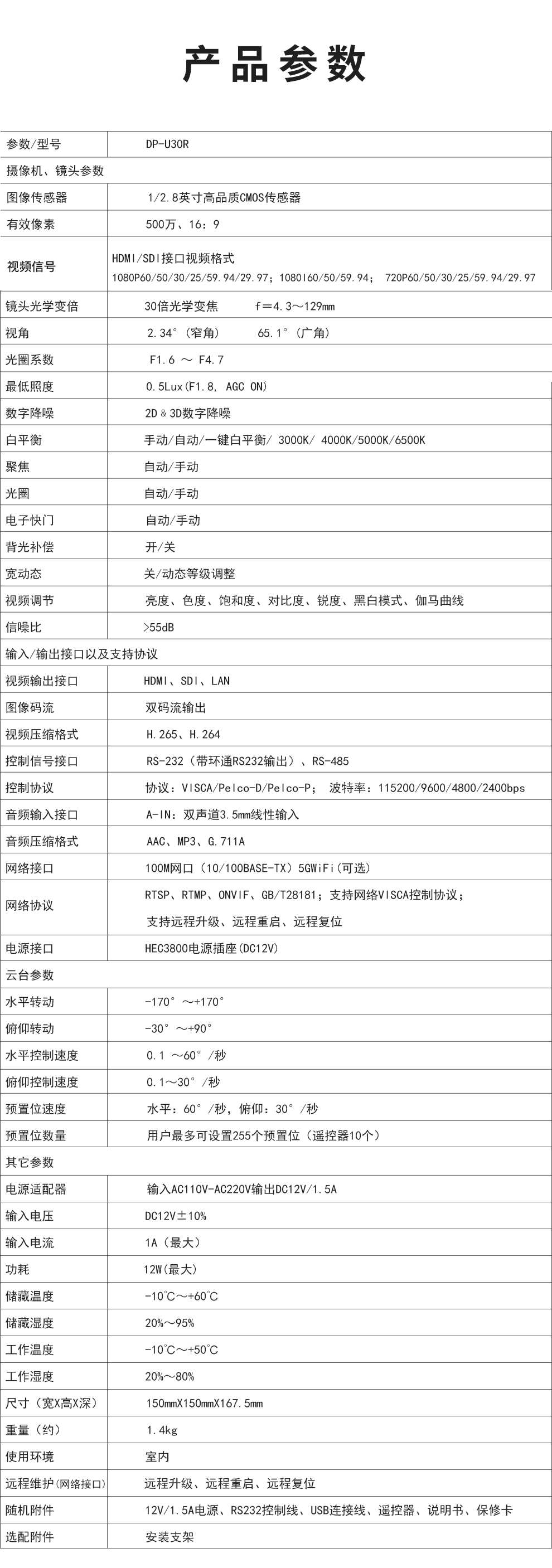 戴浦视频会议摄像头高清视频会议广角摄像头视频会议设备系统30倍变焦HDMI+SDI+LAN+RS232接口DP-UV30R 黑色