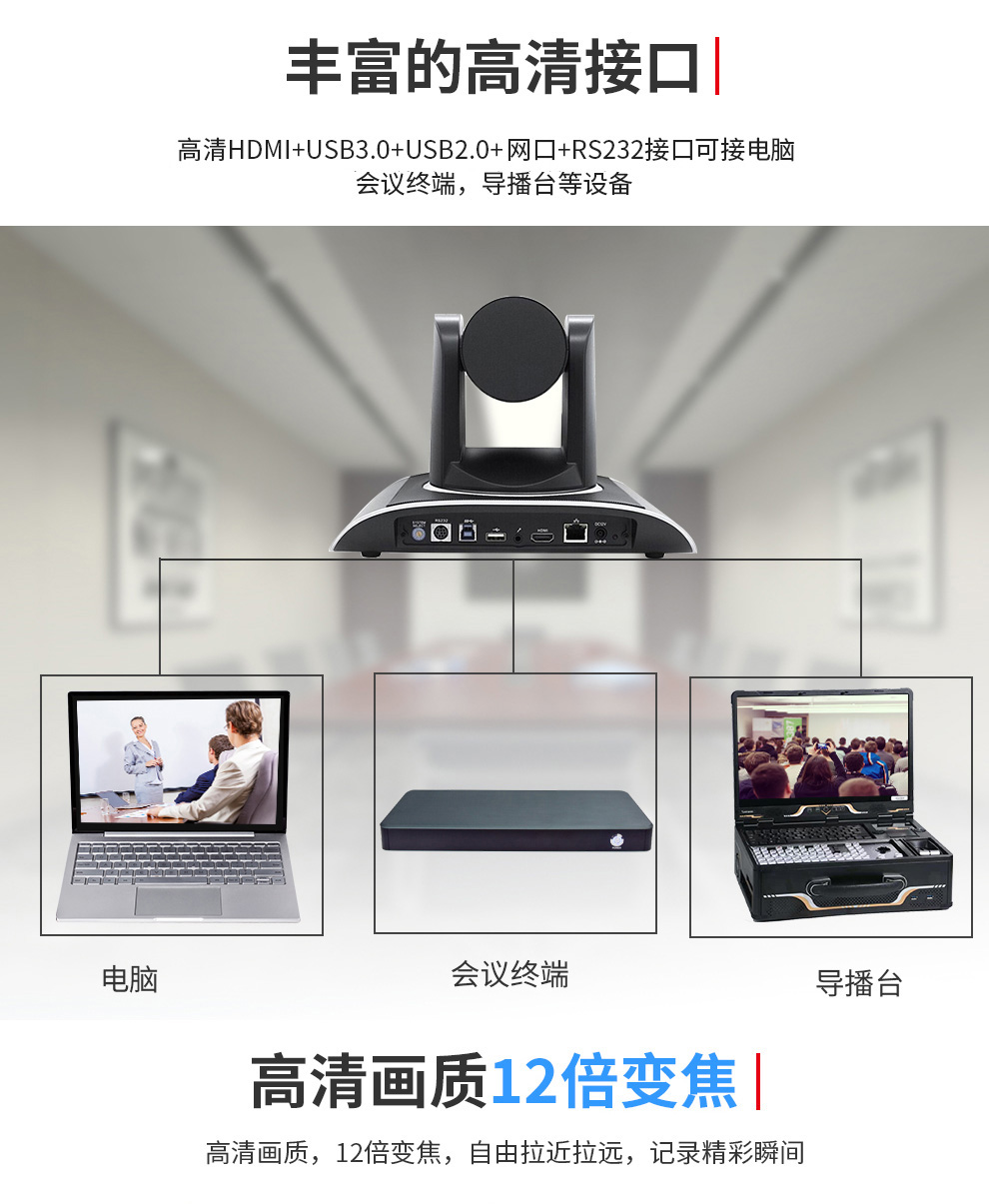 戴浦(DAIPU) DP-UW12U 12倍变焦HDMI+USB3.0+USB2.0+网口 高清视频会议广角摄像 黑色(单位:台)
