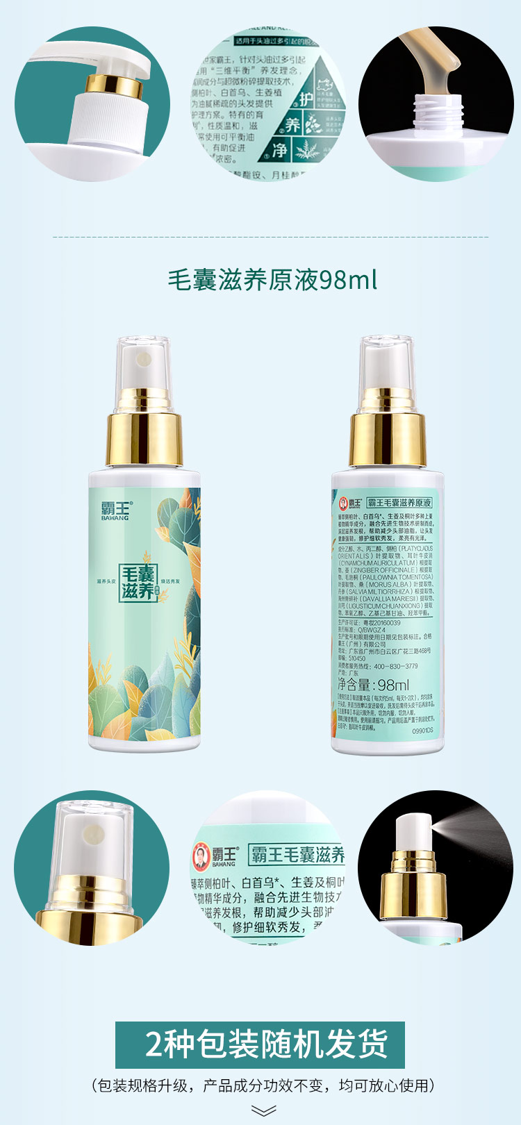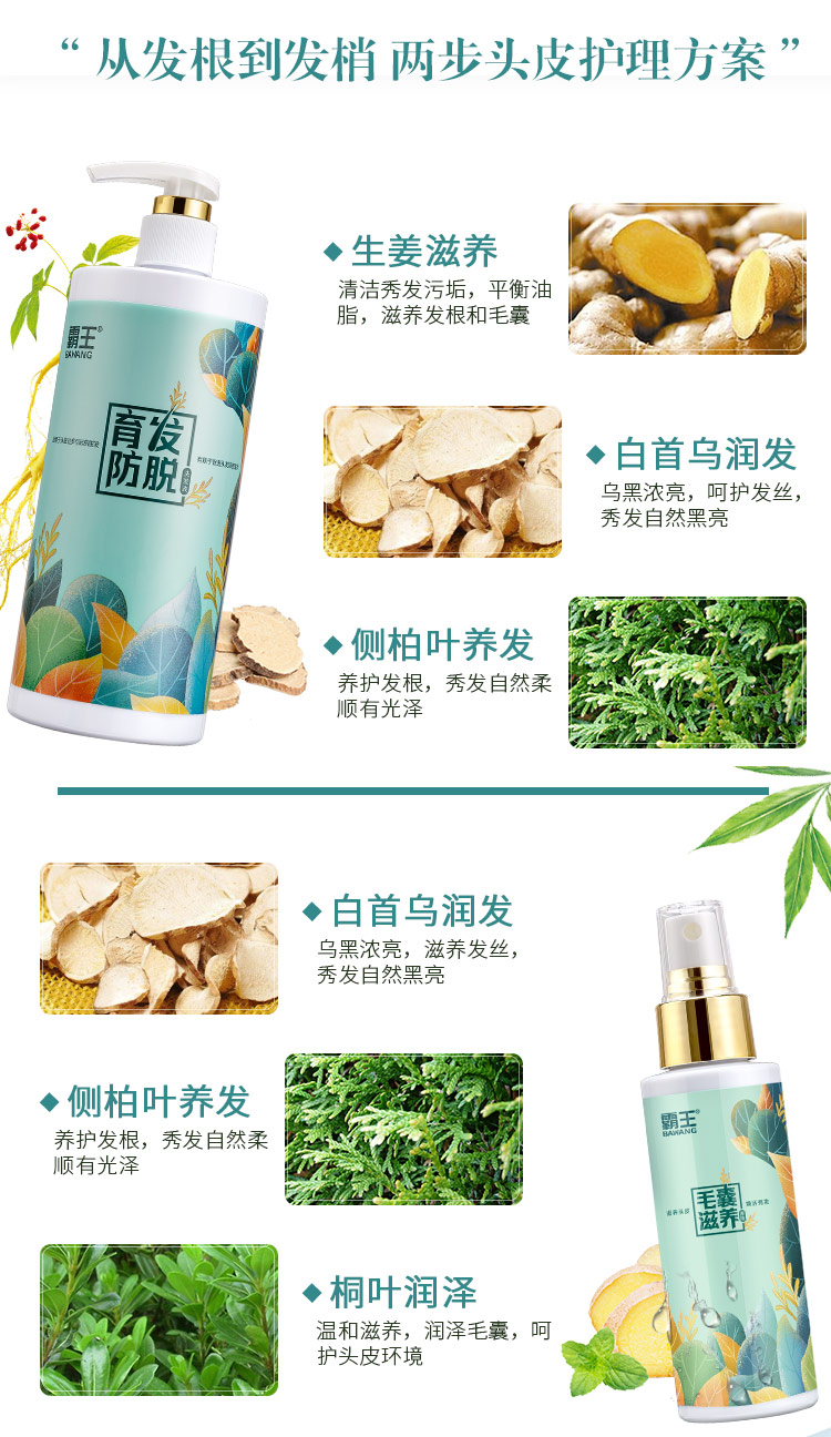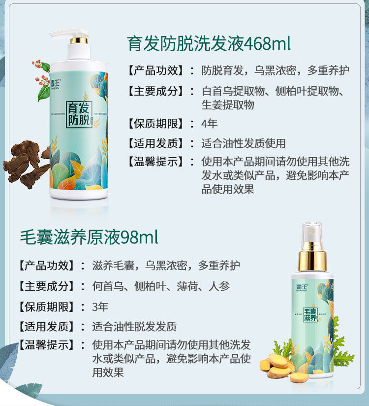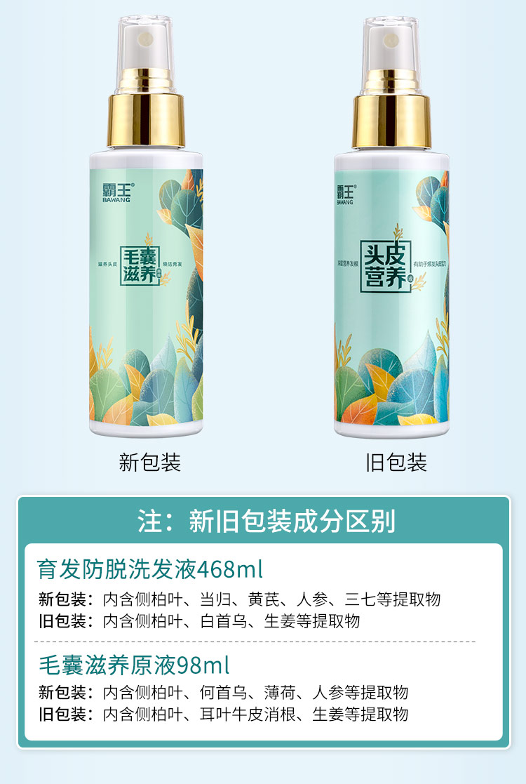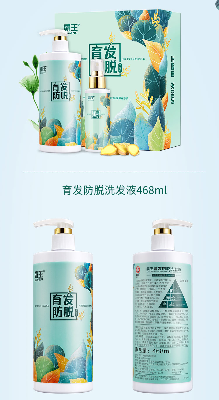 霸王生姜 防脱洗发液468ml+头皮营养液98ml 蓝色