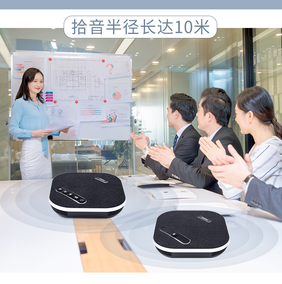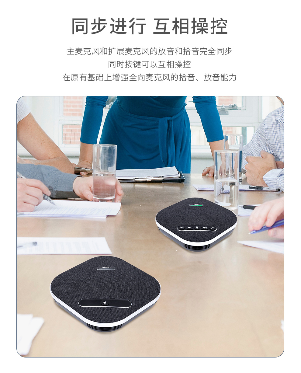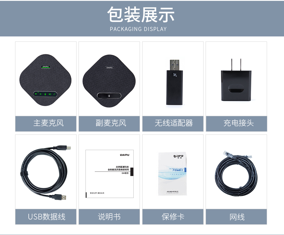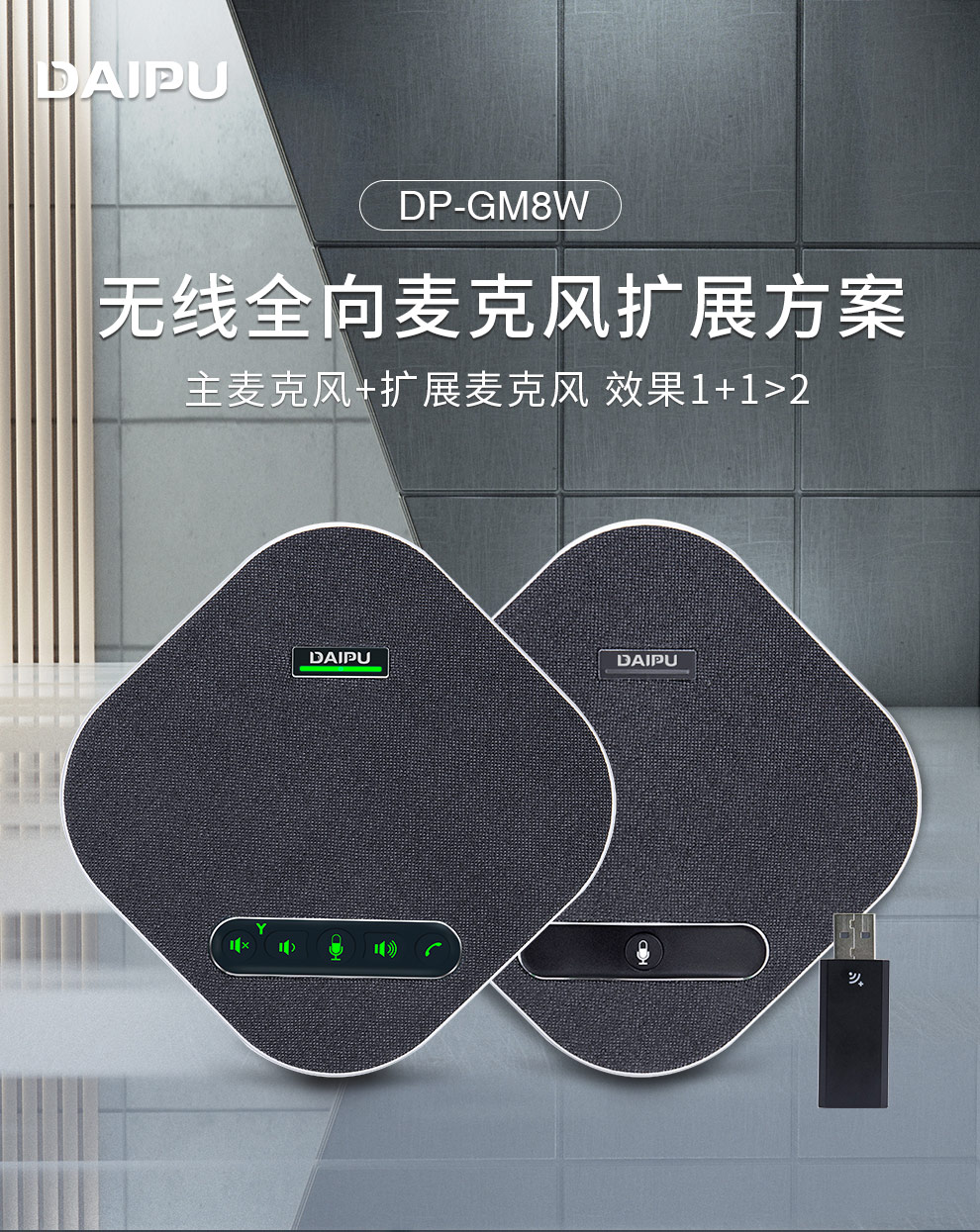 戴浦(DAIPU)DP-GM8W视频会议无线全向麦克风(一拖二扩展麦级联)12米拾音 2.4G无线连接 适合40-80㎡会议室 黑色
