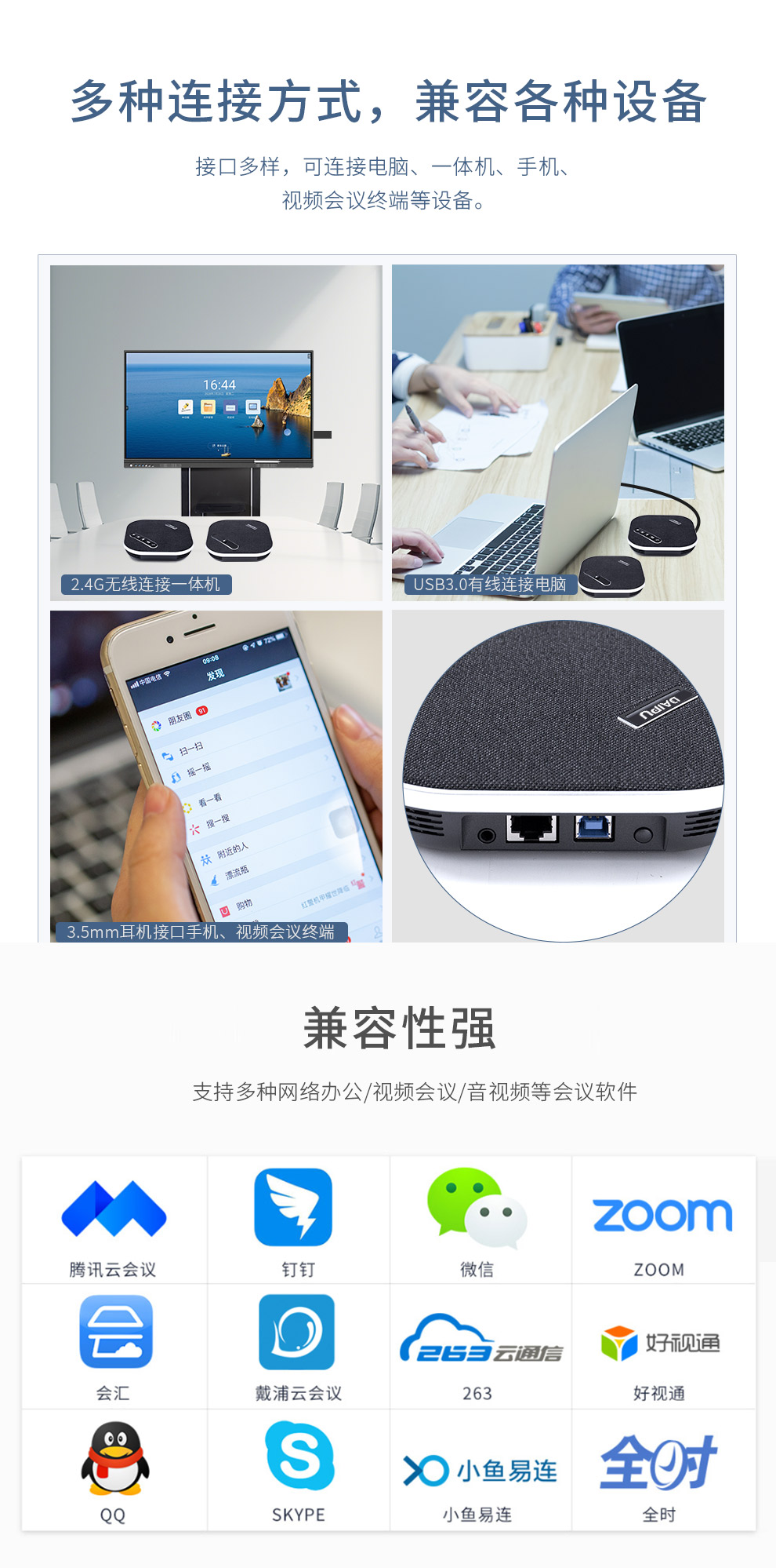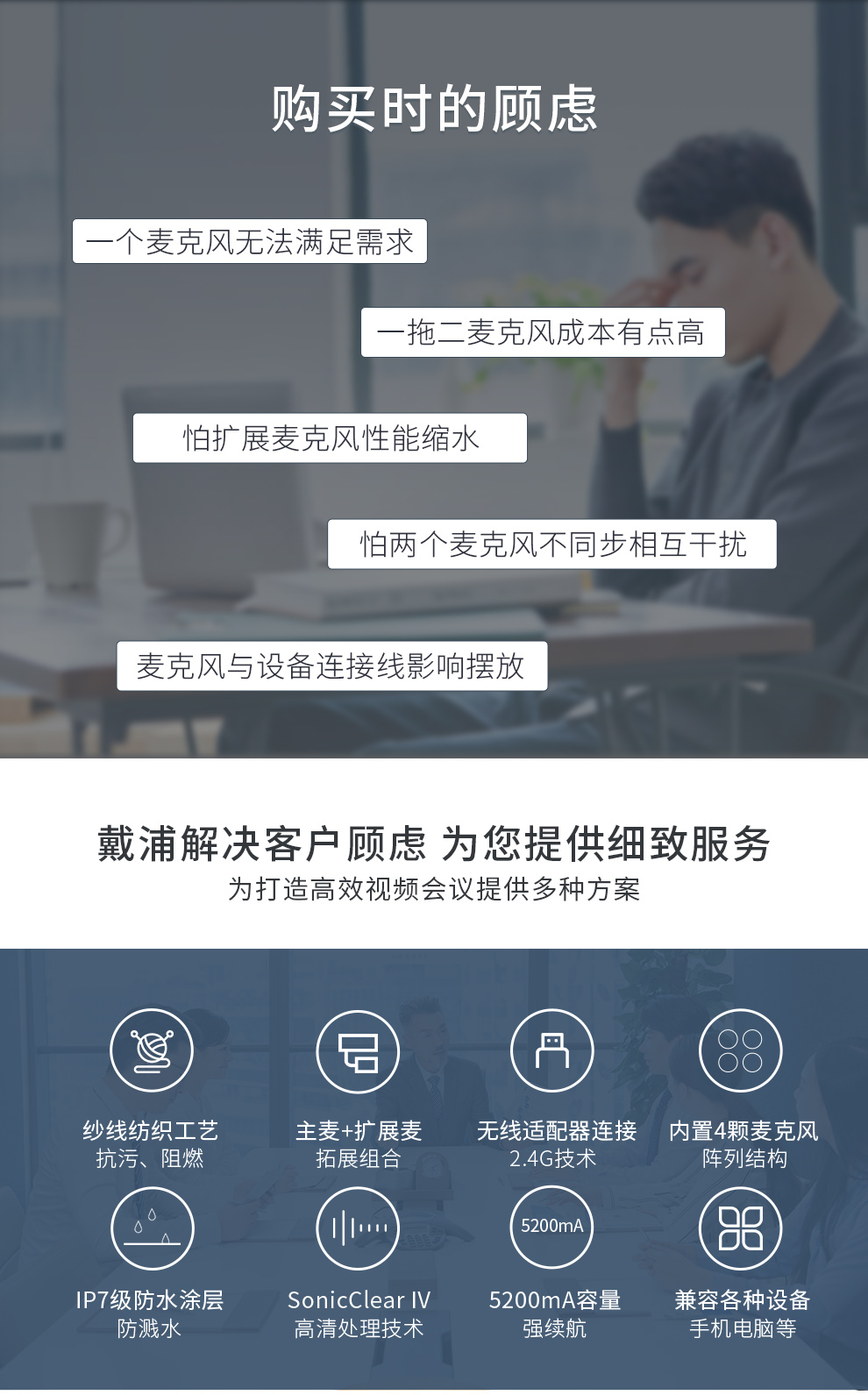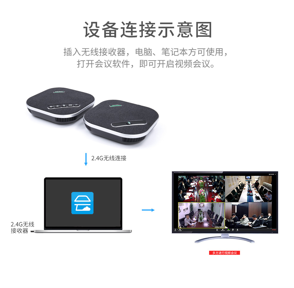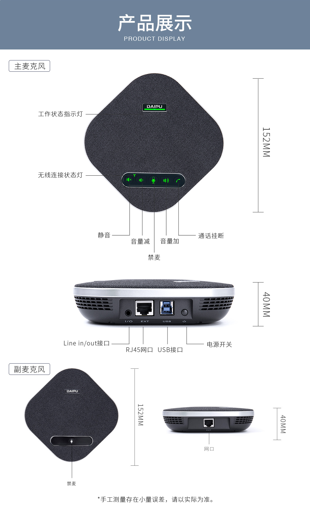 戴浦(DAIPU)DP-GM8W视频会议无线全向麦克风(一拖二扩展麦级联)12米拾音 2.4G无线连接 适合40-80㎡会议室 黑色