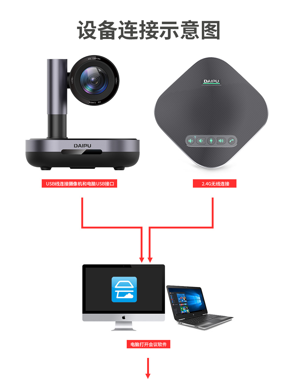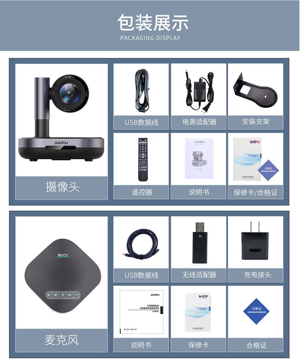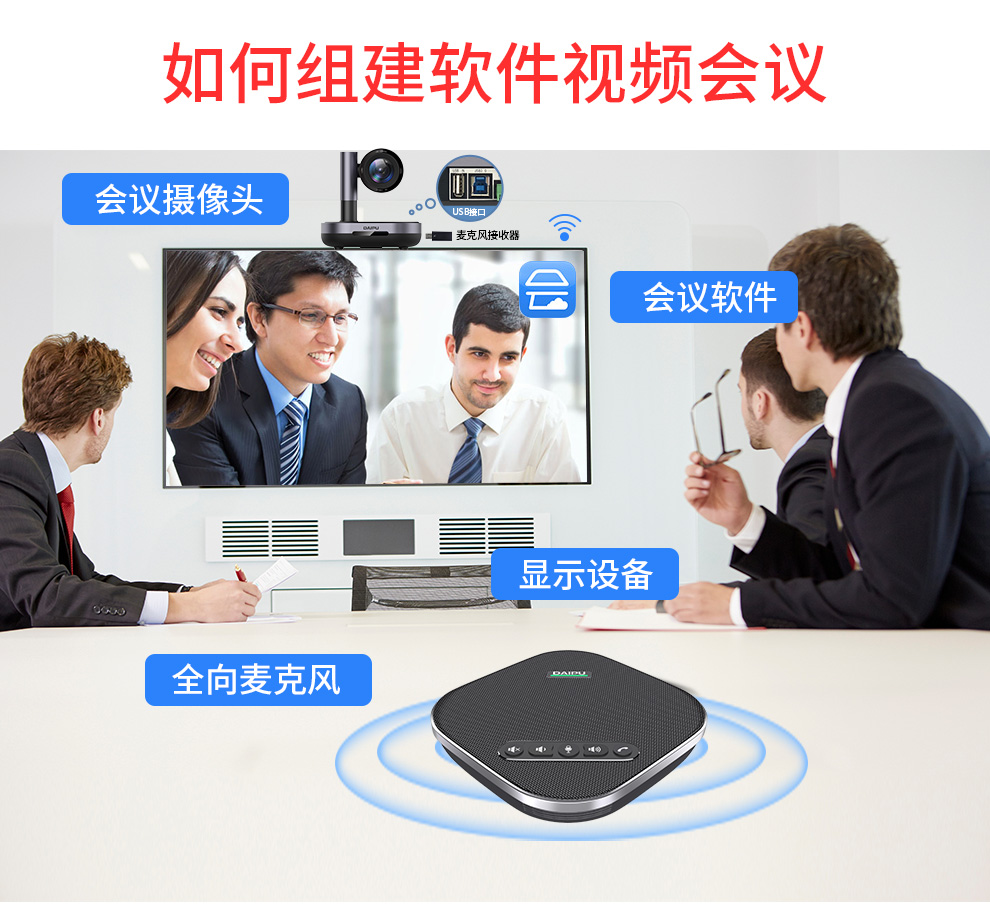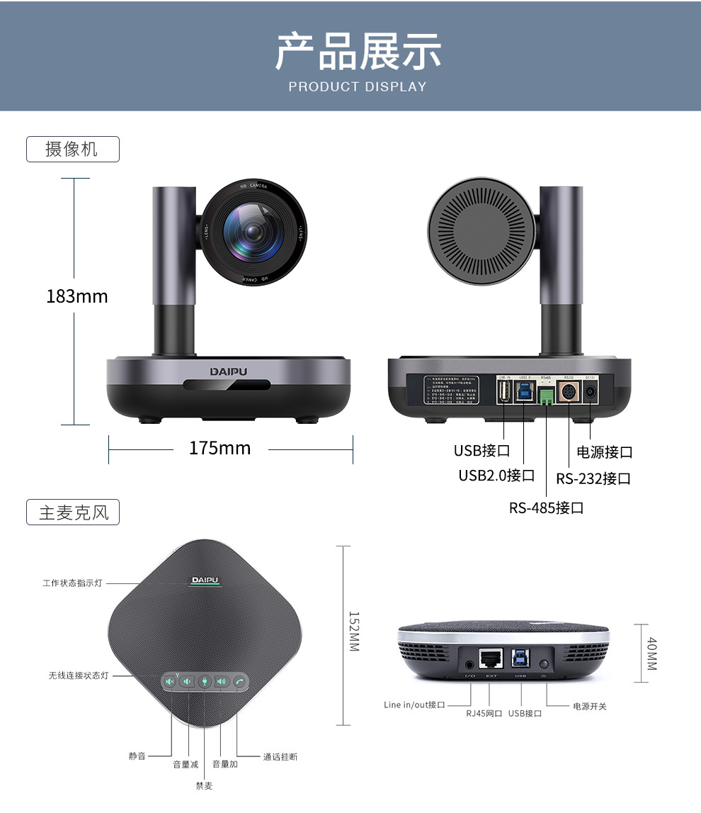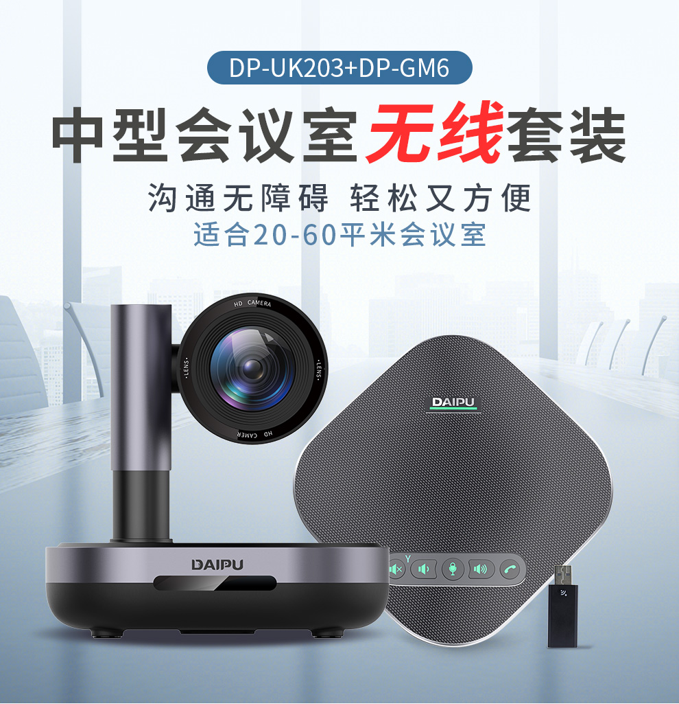 戴浦中型视频会议标准集成套装视频会议摄像头/摄像机/无线全向麦克风会议系统套装适用20-60㎡DP-MateT50 黑色