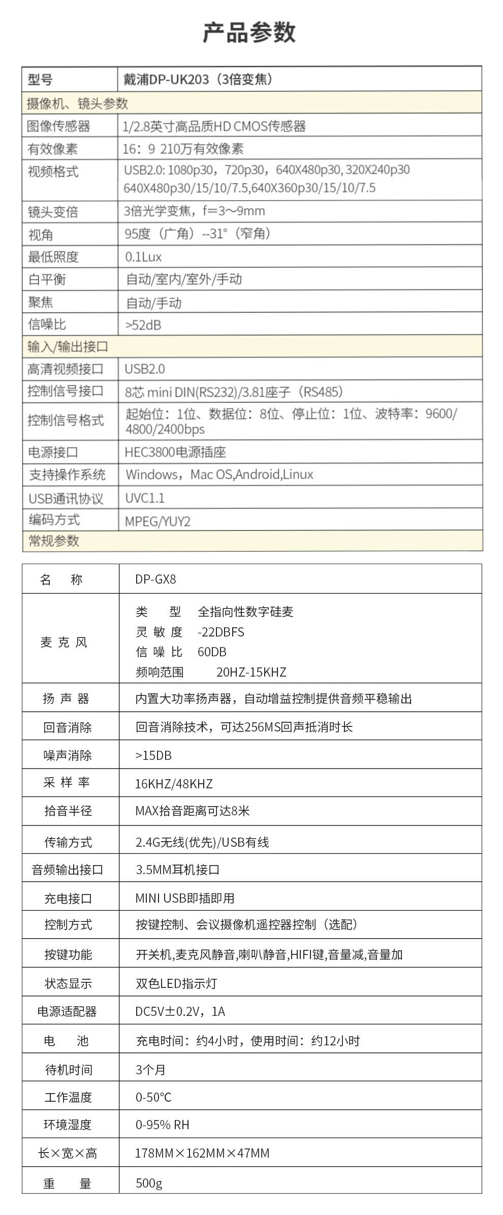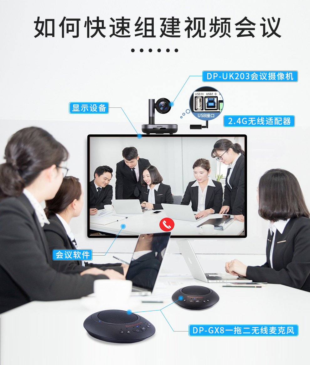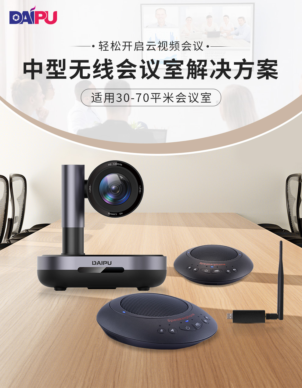 戴浦DAIPU大型视频会议无线套装 适用30-70㎡(3倍变焦USB视频会议摄像头+2.4G会议无线全向麦克风一拖二级联) 黑色
