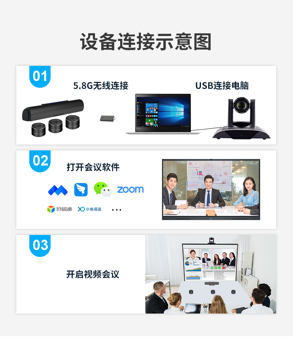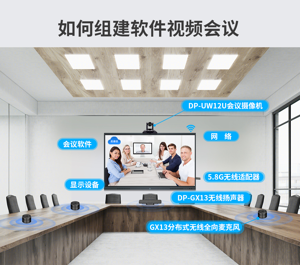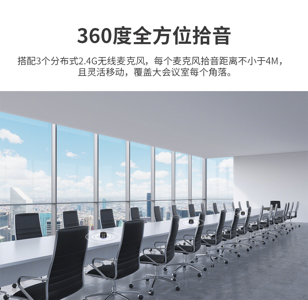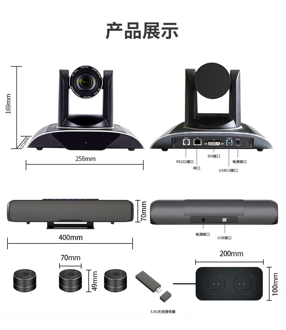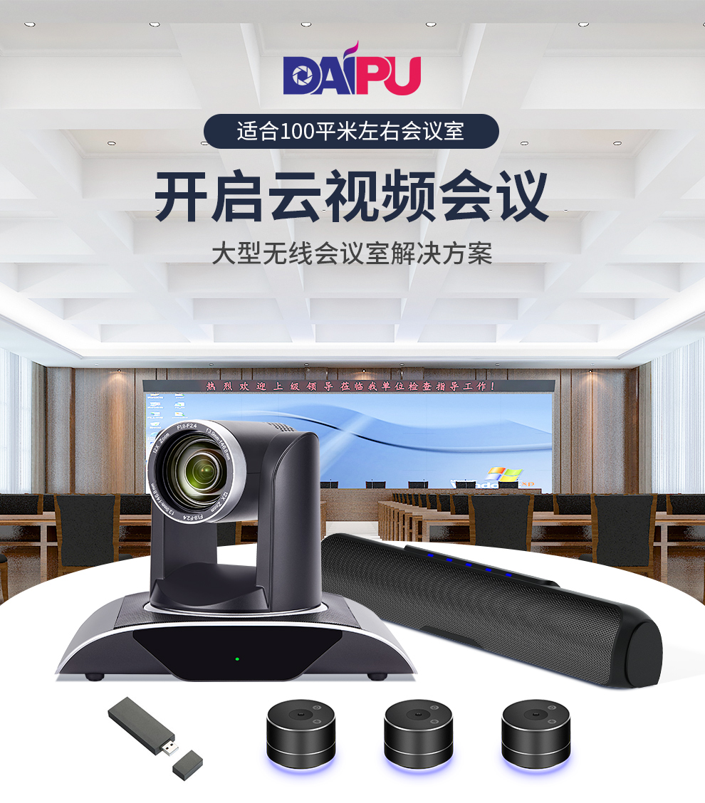 戴浦DAIPU大型视频会议室套装 适用80-100㎡(5.8G无线视频会议分布式全向麦克风+12倍变焦USB视频会议摄像头) 黑色