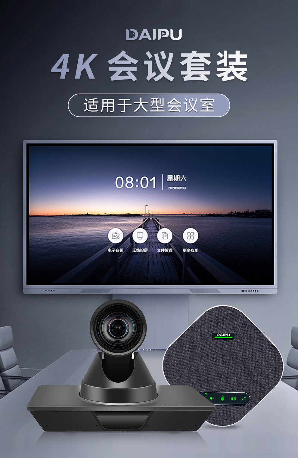 戴浦(DAIPU)高清4K视频会议套餐 4K超高清免驱遥控云台摄像头 2.4G无线麦克风远程视频会议腾讯会议DP-T118 黑色