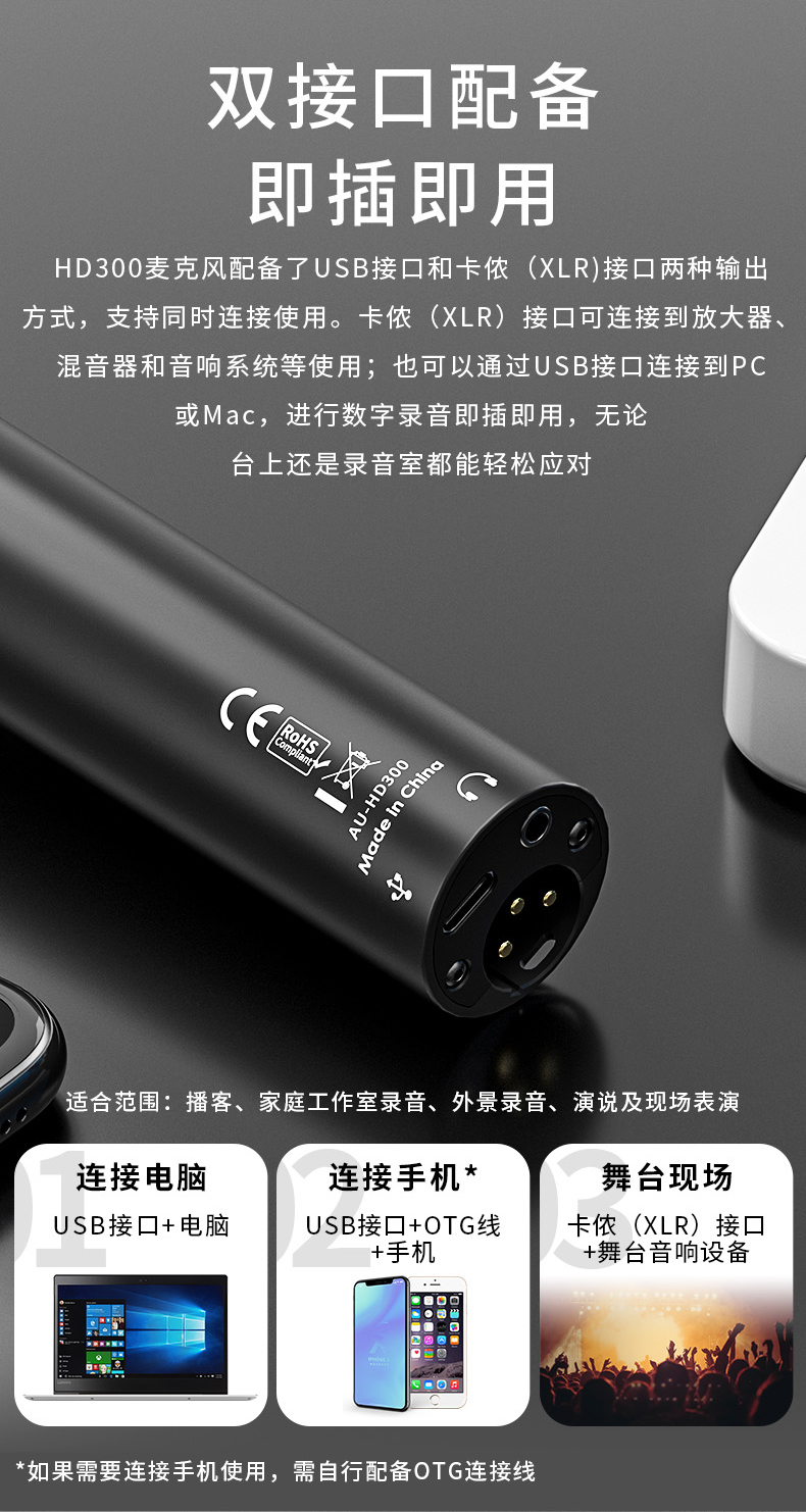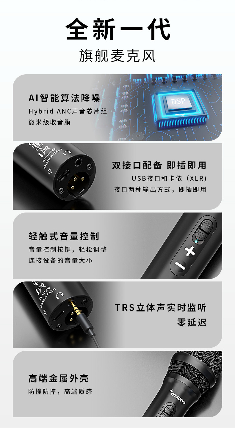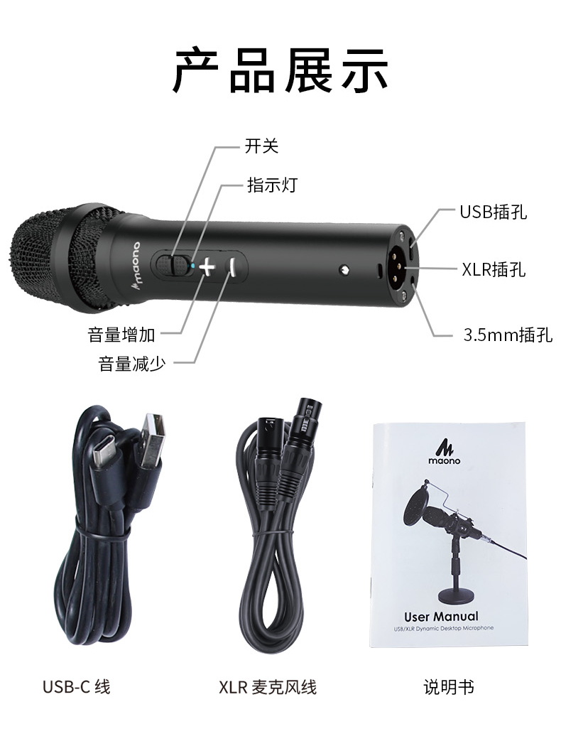 maono闪克 专业USB动圈麦克风HD300T(单位:件) 黑色