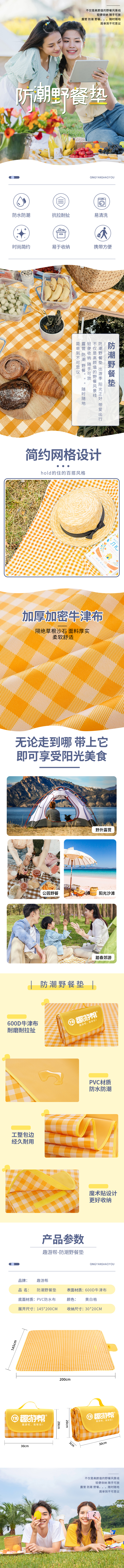 趣游帮Y13黄白格中号野餐垫 黄白格