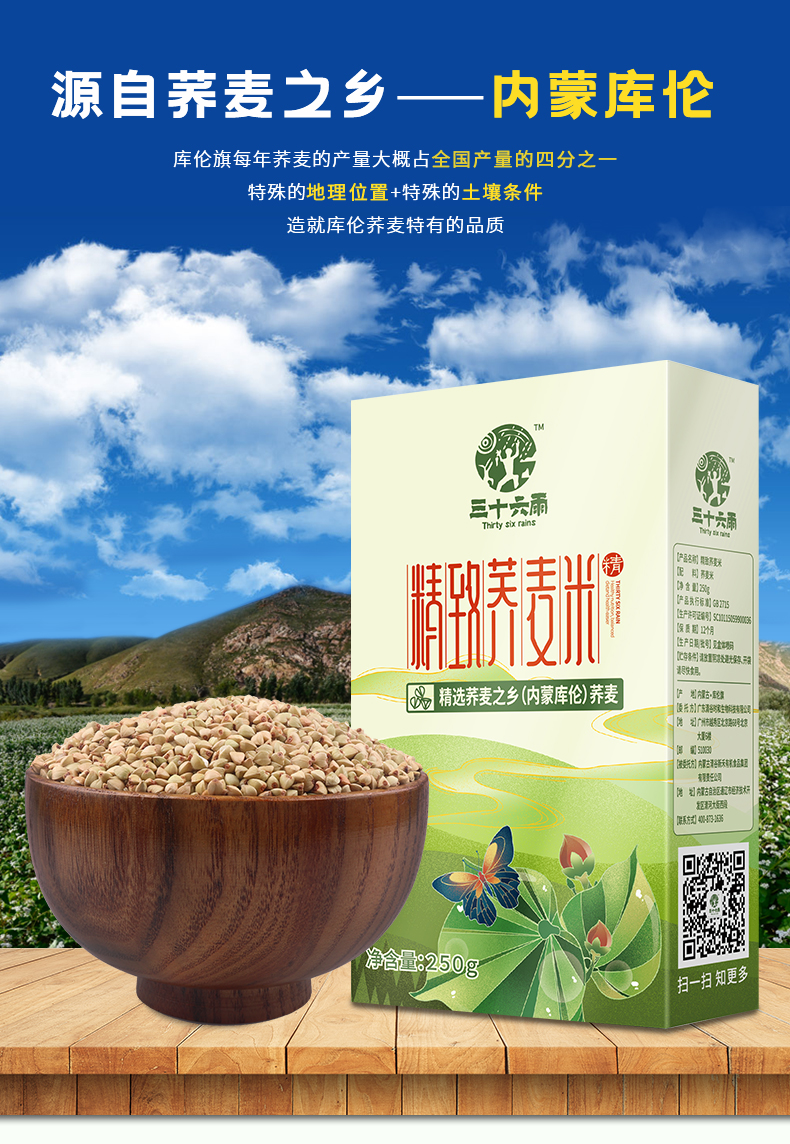 三十六雨 精致荞麦米 250g*3(单位:盒) 松石绿