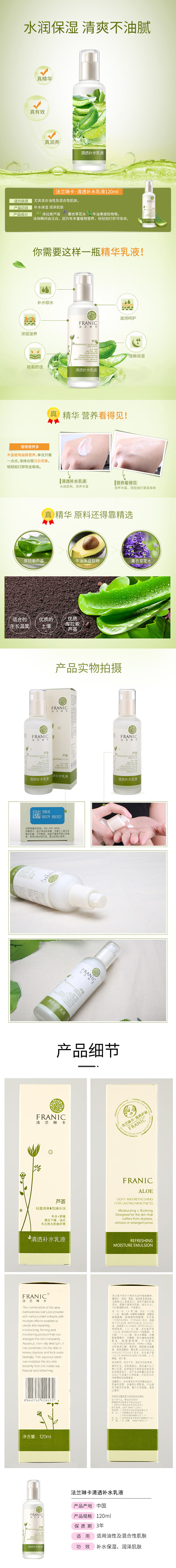 法兰琳卡(FRANIC)芦荟120ml 清透补水乳液 (单位:瓶) 柠绿色