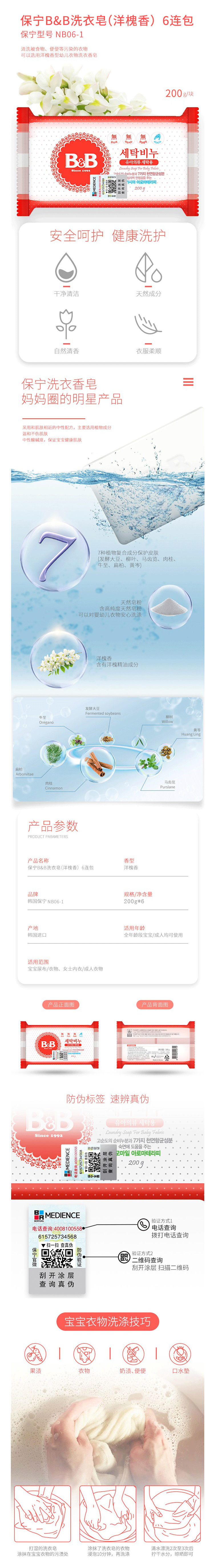 保宁(B&B)洗衣香皂 (洋槐香)6连包NB06-1(六连包)200g(单位:套) 粉色