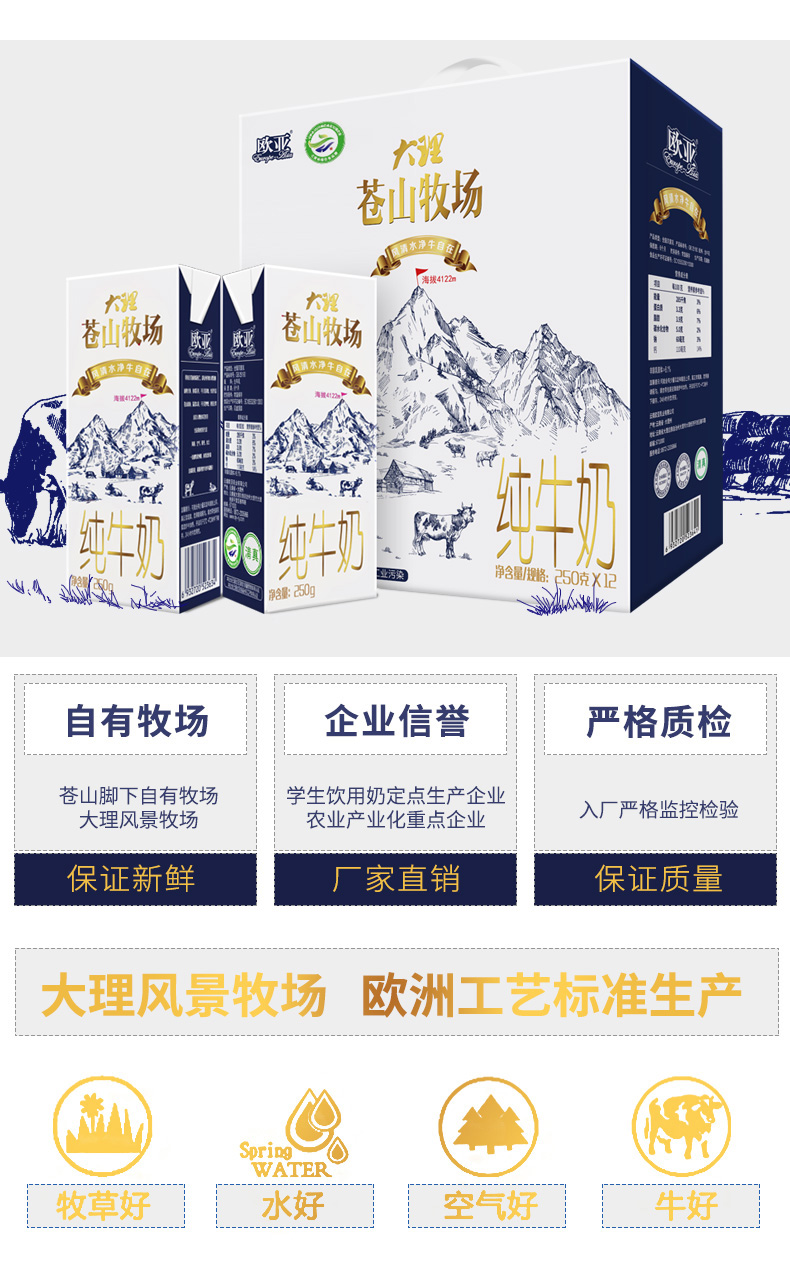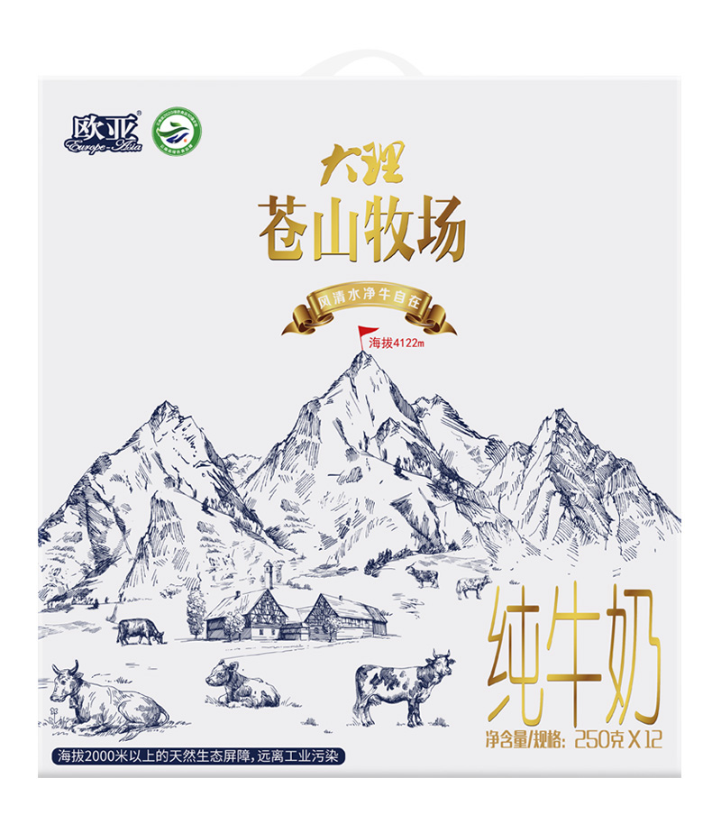 欧亚苍山牧场纯牛奶250ml*12盒
