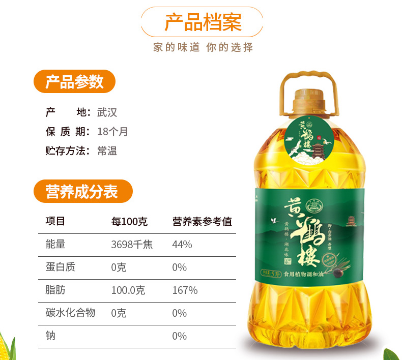 黄鹤楼野山茶食用植物调和油5L/瓶 金色