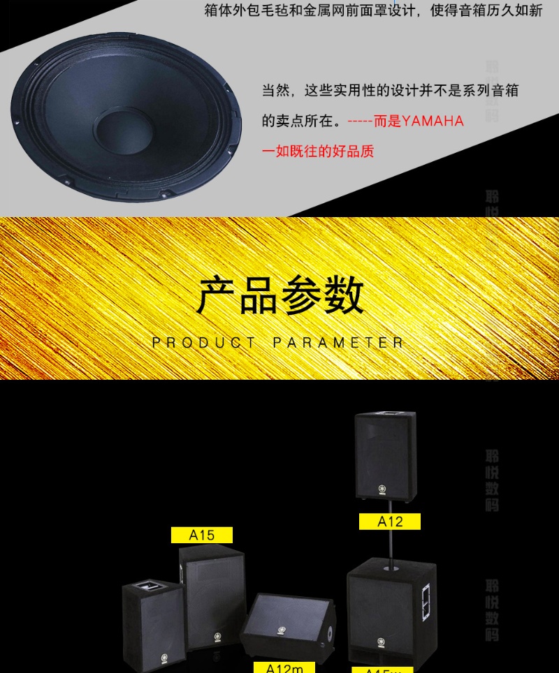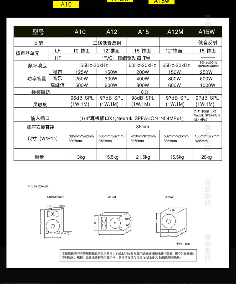 雅马哈(YAMAHA)KTV舞台会议扩声大功率音箱 专业全频12英寸返听音箱 A12M 只 曜石黑