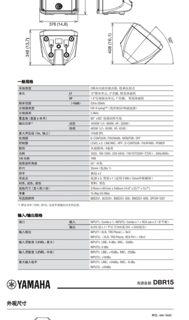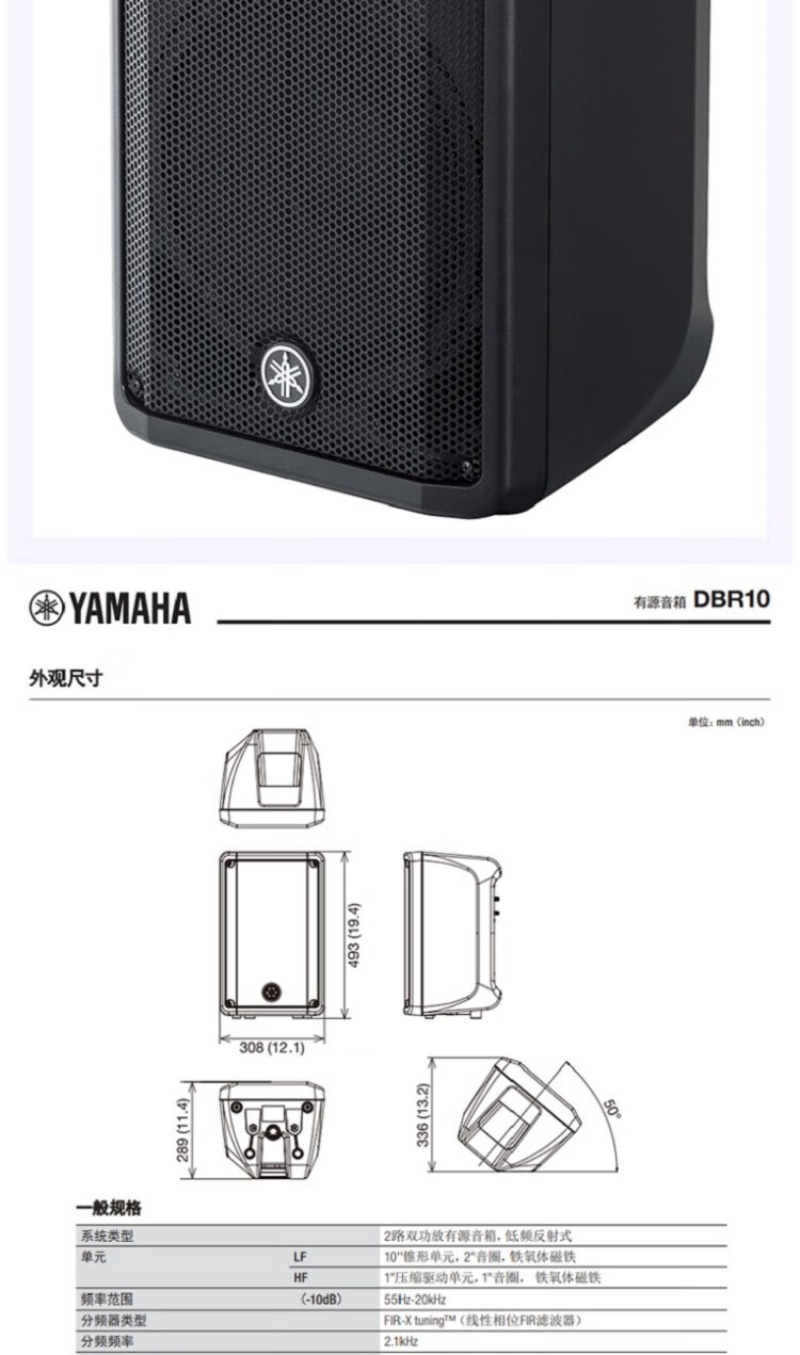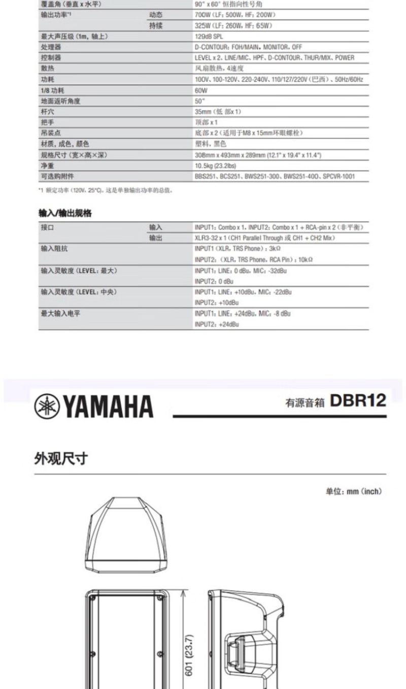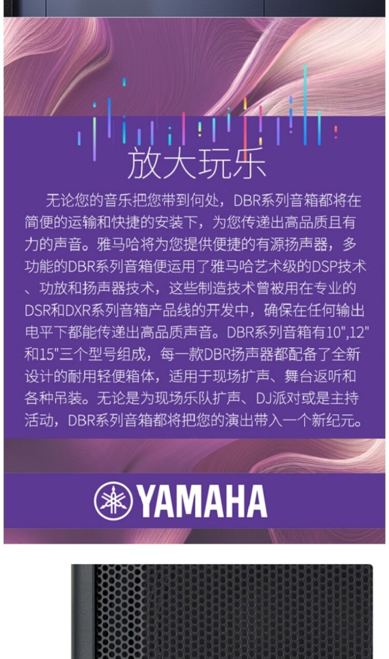 雅马哈(YAMAHA)有源专业音箱舞台会议演出音响 DBR12官方标配 只 曜石黑