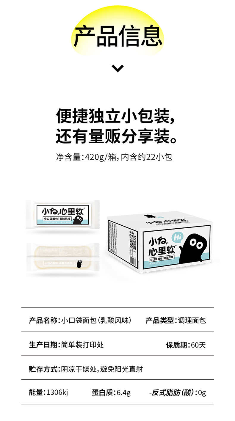 小白心里软 乳酸小口袋夹心面包420g 莓果色