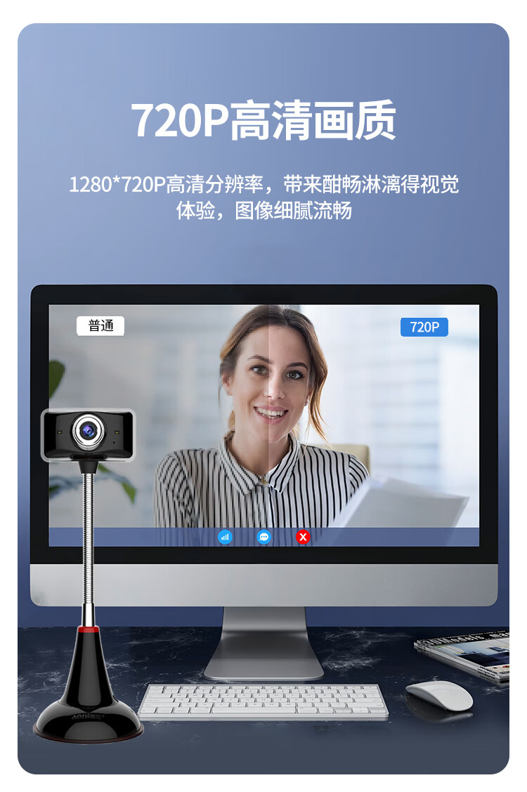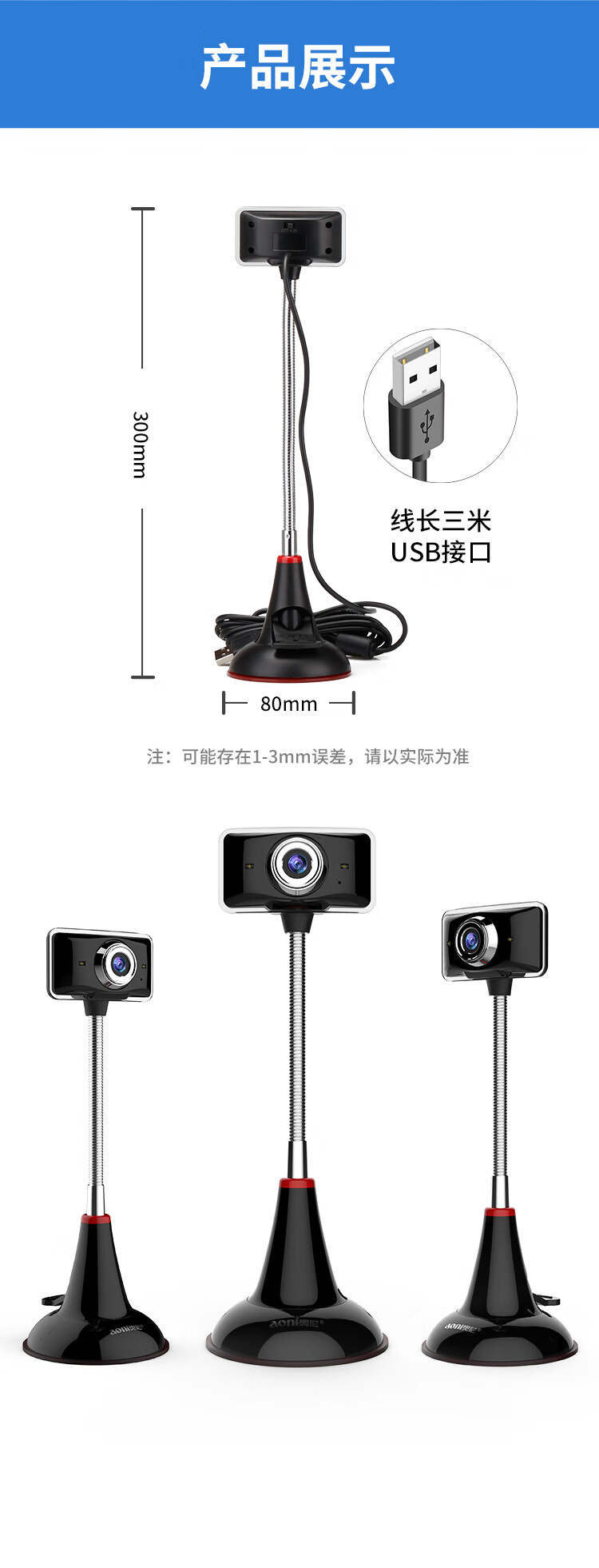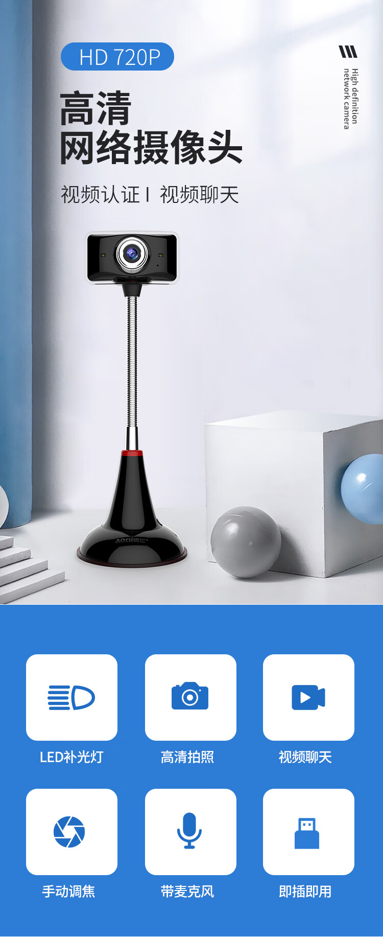 奥尼(aoni)C11L 电脑摄像头高清实名认证酒店人像采集摄像头 带麦克风USB摄像头免驱 黑色