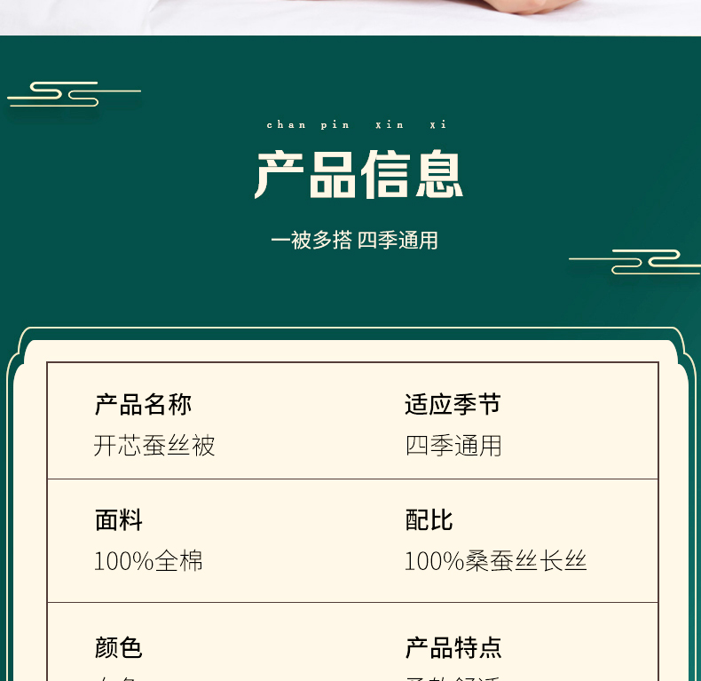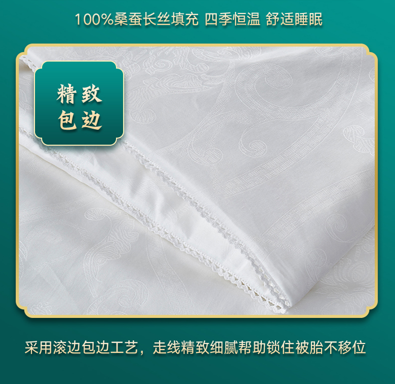 怡莲YL801开芯蚕丝被100%桑蚕丝长丝60支纯棉提花面料透气舒适填充净重750克(单位:床) 白色 200*230CM