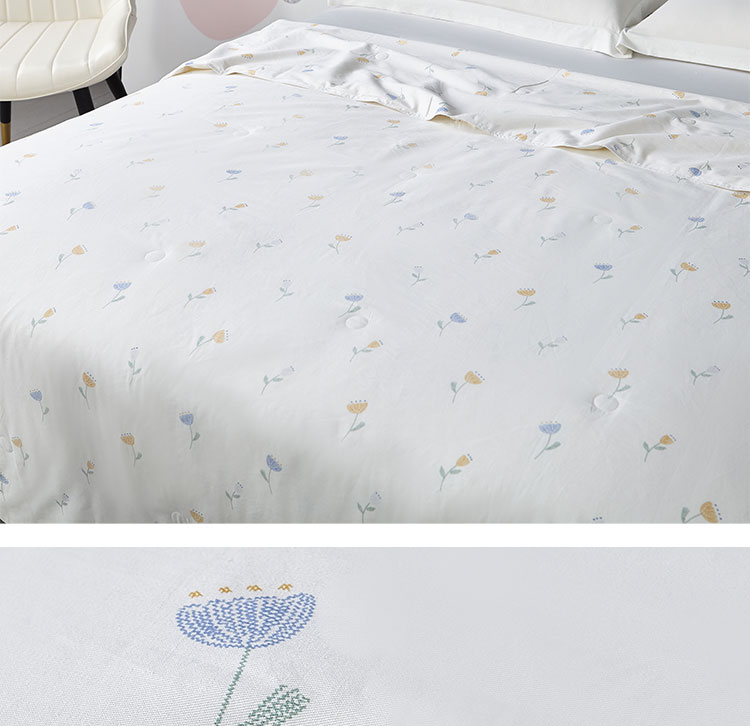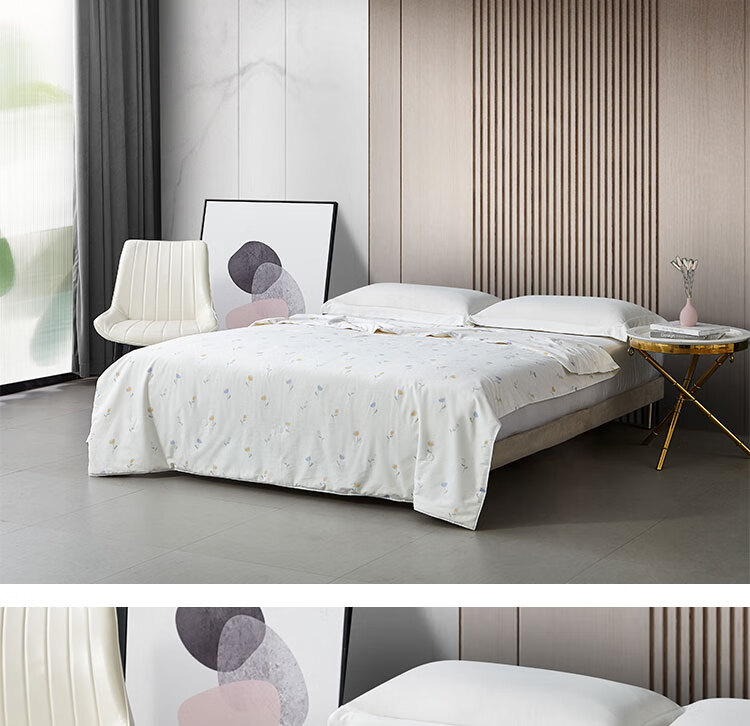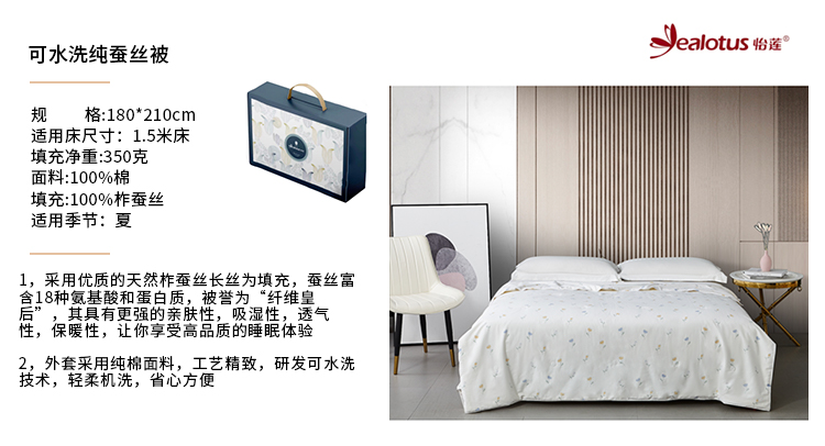 怡莲YL-Z603可水洗柞蚕丝被纯棉印花面料夏季薄款空调被双人床净填充350克(单位:床) 本白色印花 180*210CM