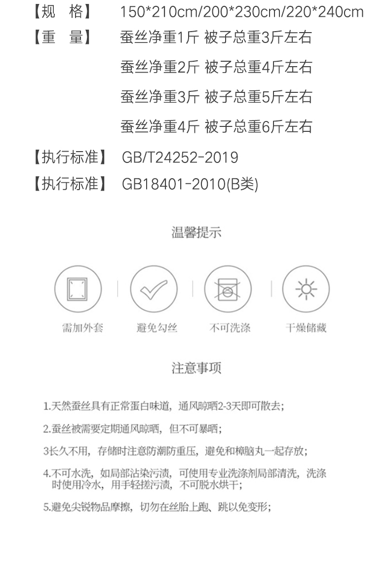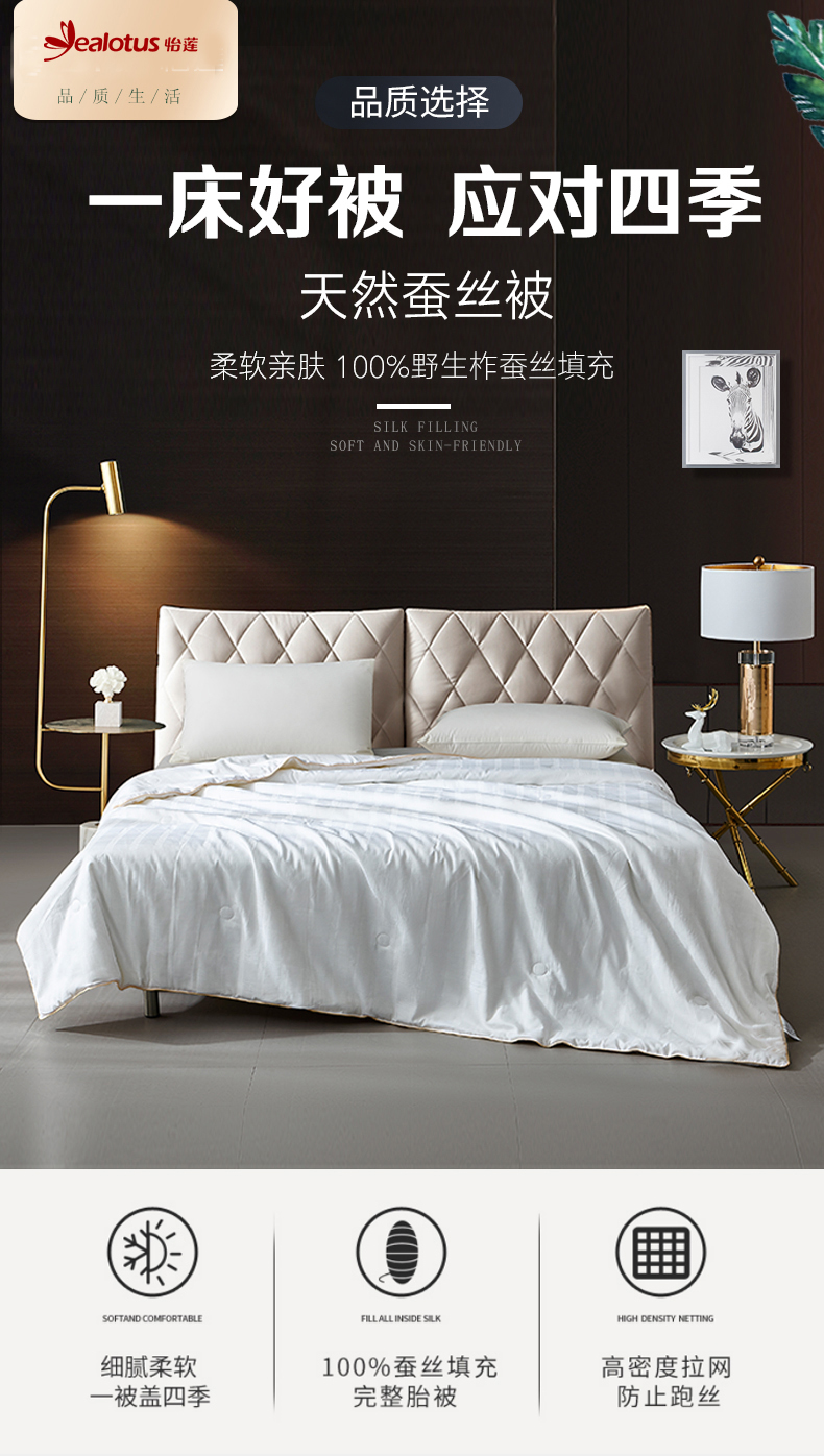 怡莲YL-Z602天然野生蚕丝被纯柞蚕丝被春秋通用双人床200*230CM净填充2斤(单位:床) 白 四线格