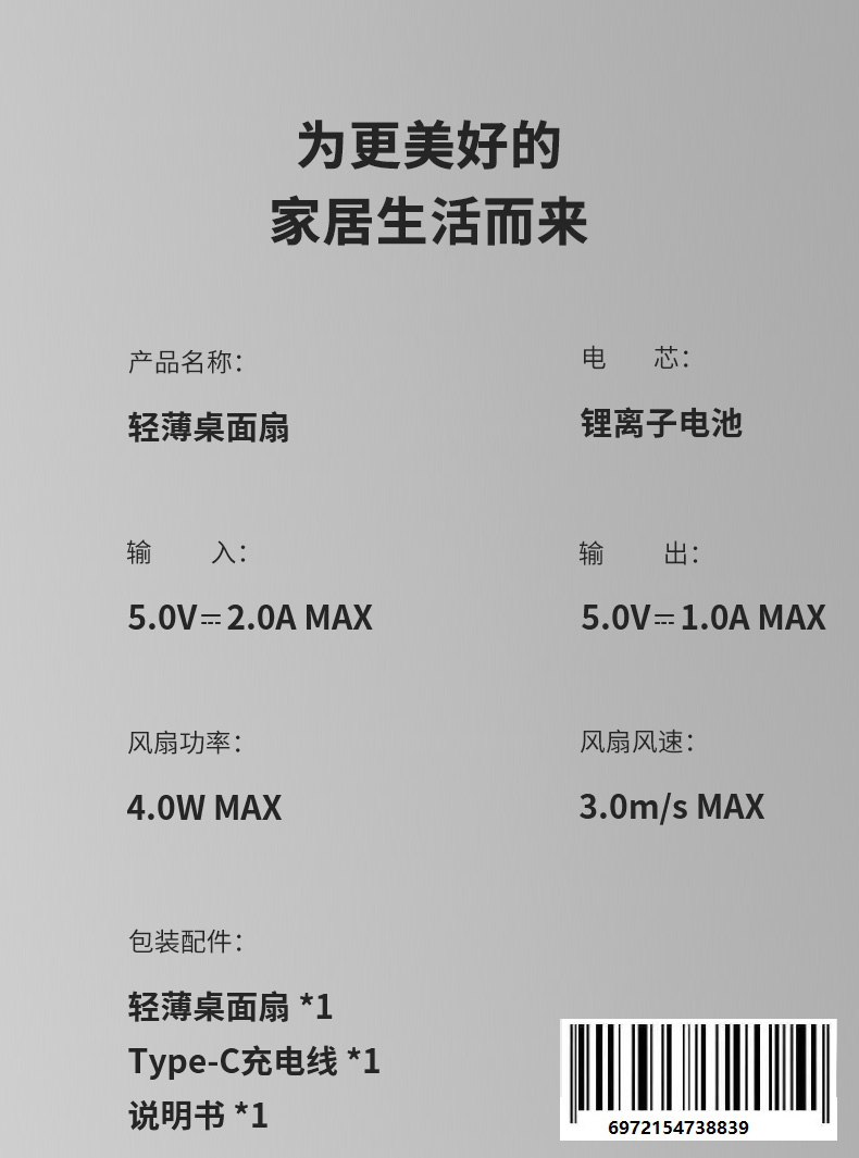 几素(JISULIFE) 桌面小风扇 FA26A 2000mAh 白色(单位:个)