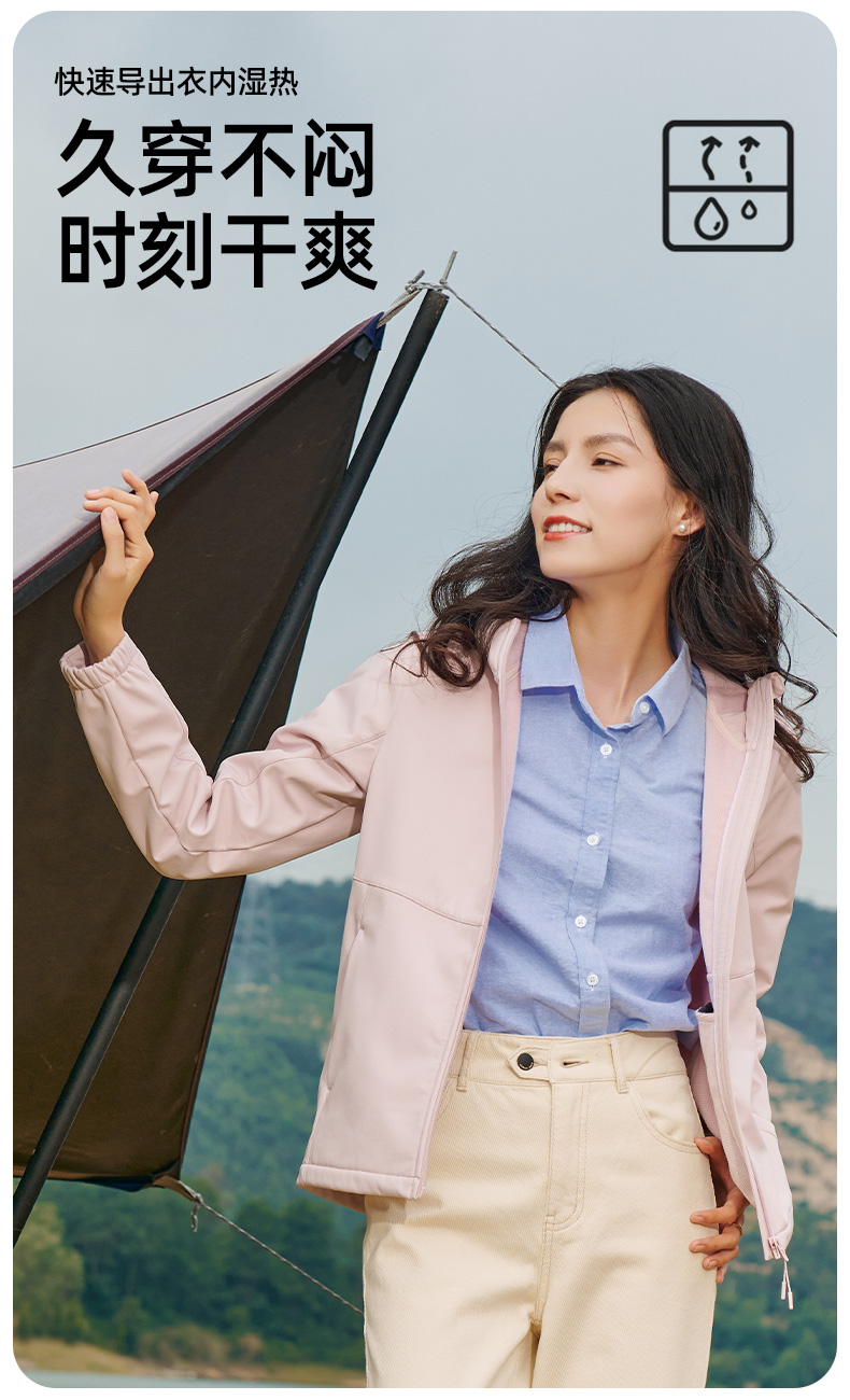 丰讯女士单层冲锋衣秋季立领防风户外服外套FXTF231002(单位:件) 樱花粉 L