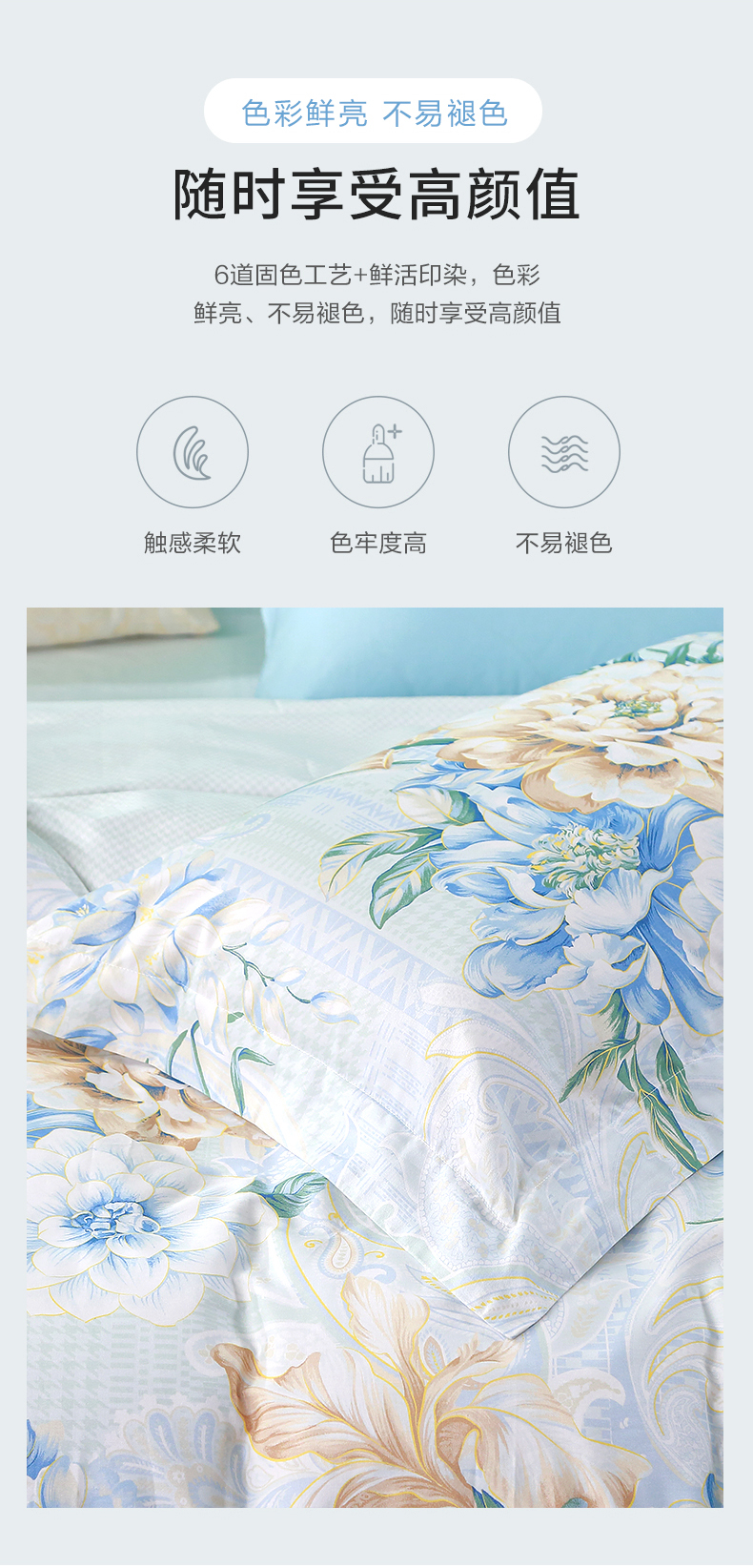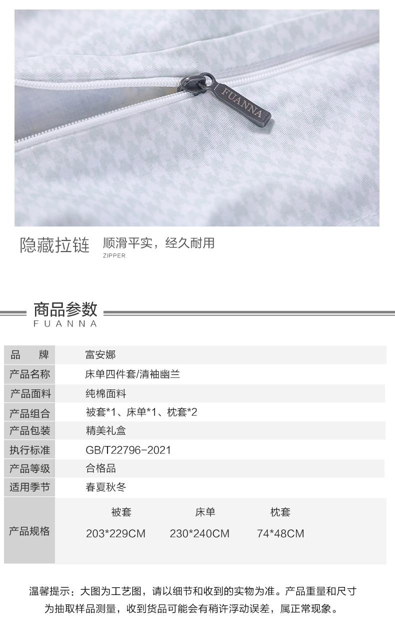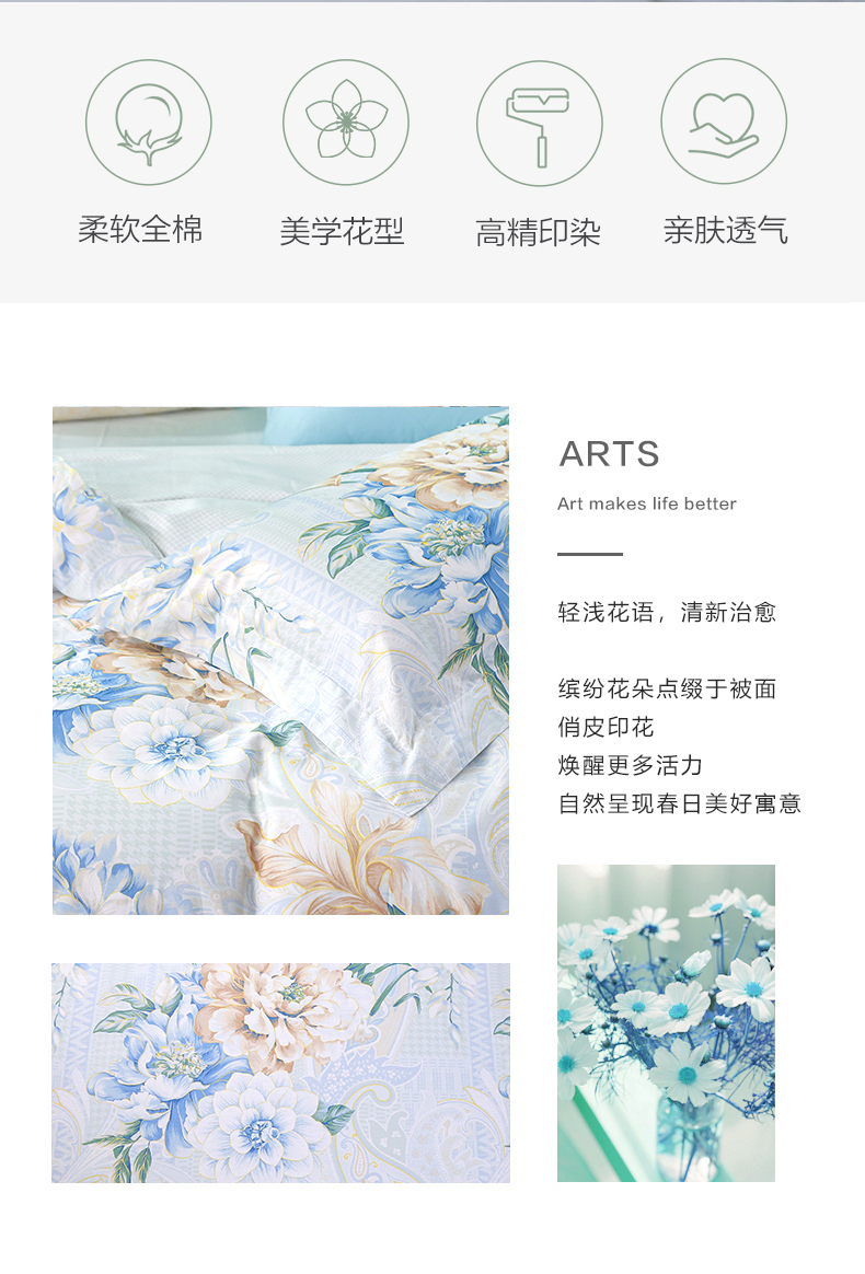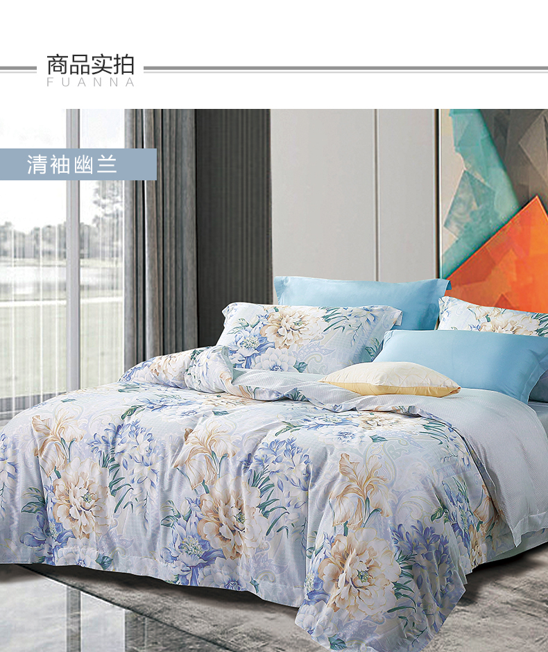 富安娜 713102425床单四件套/清袖幽兰203*229cm 清袖幽兰