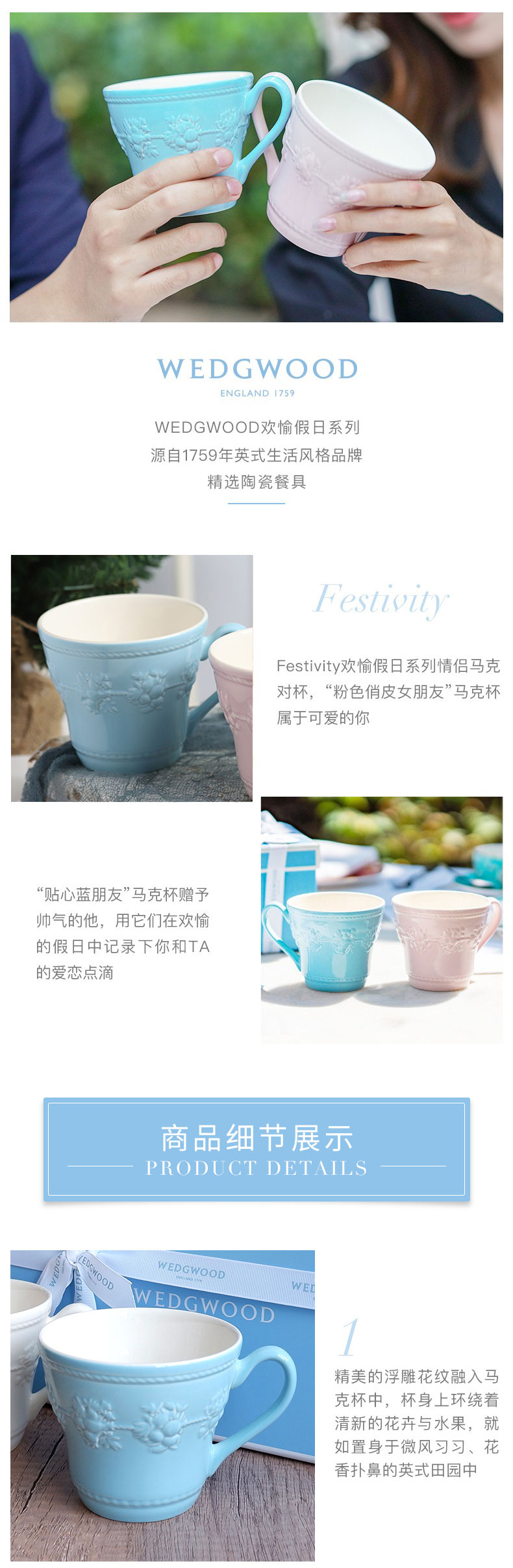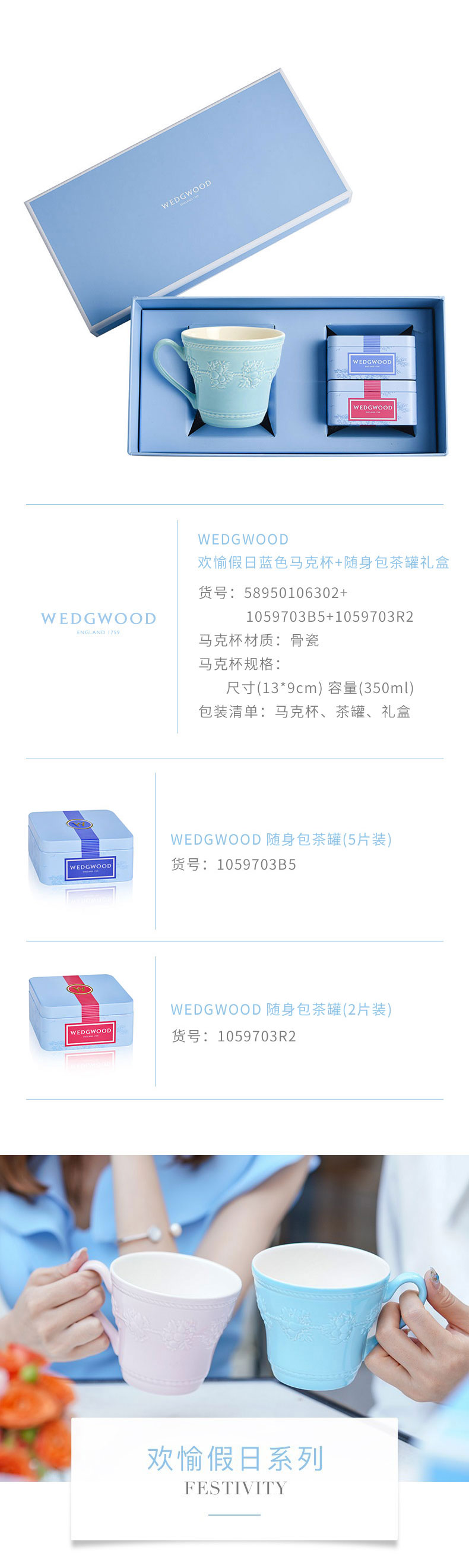 WEDGWOOD威基伍德欢愉假日骨瓷蓝色马克杯+随身包茶罐礼盒 蓝色