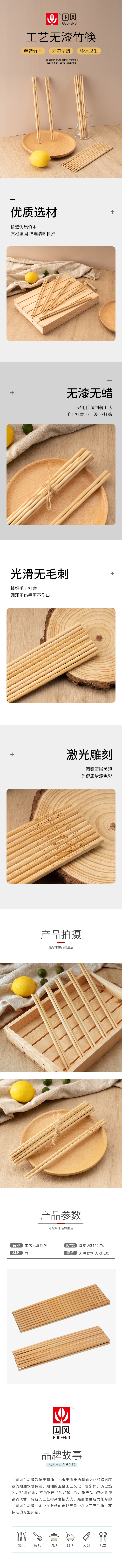 国风工艺无漆竹筷10双GF-1951 象牙色