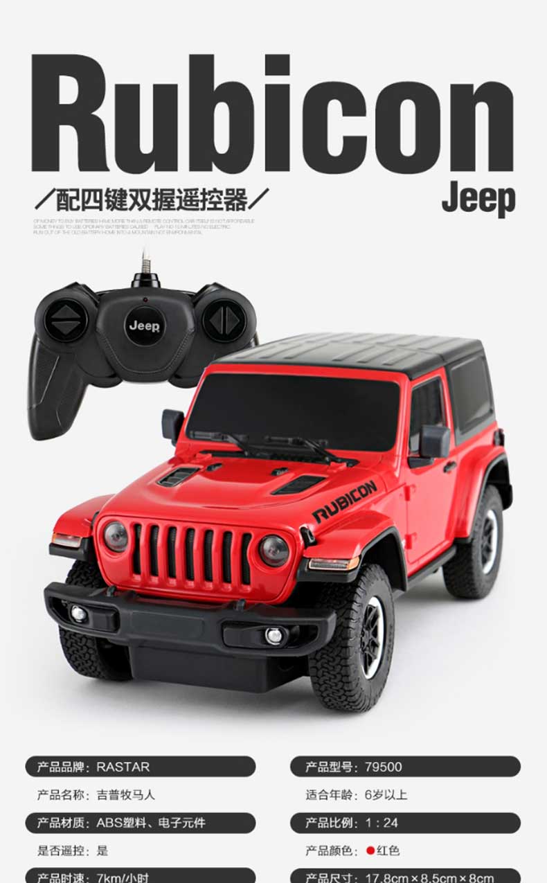 rastar 1:24儿童遥控车玩具车吉普牧马人79500(单位:辆) 红色