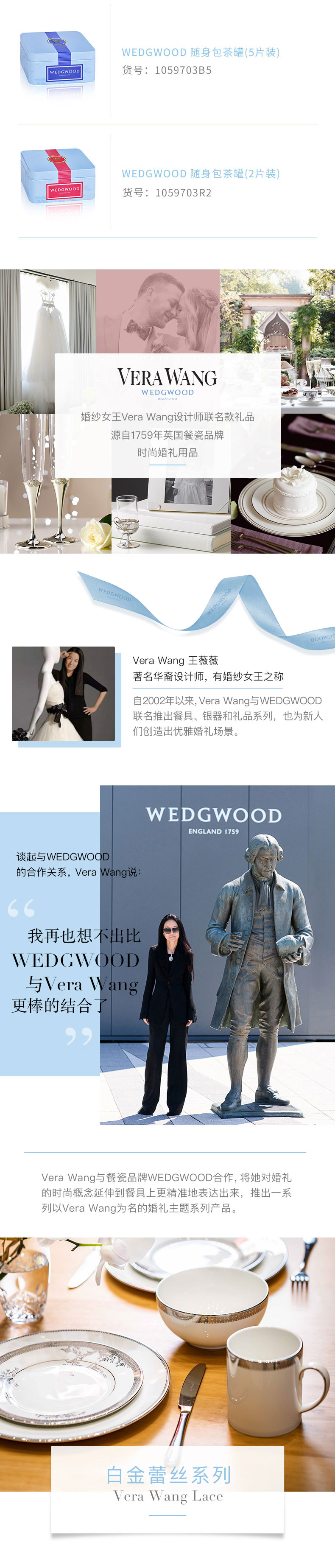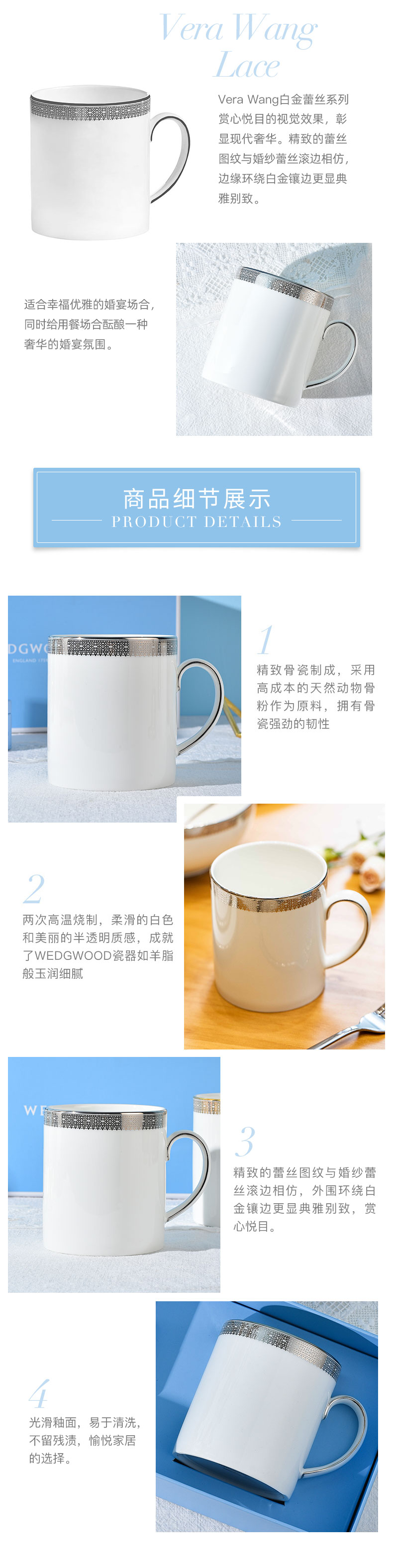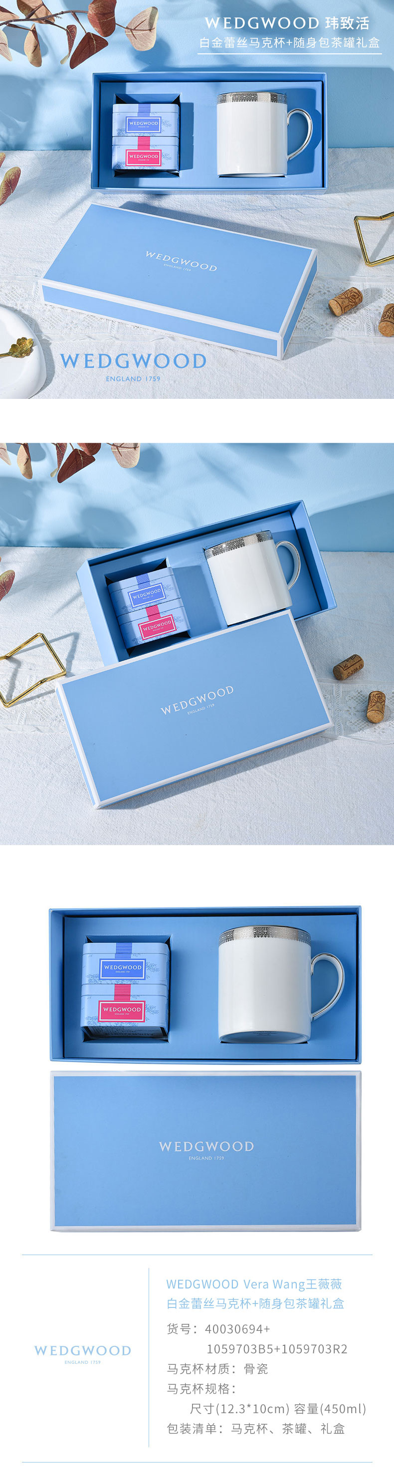 WEDGWOOD威基伍德 Vera Wang王薇薇(单位:套) 白金蕾丝马克杯+随身包茶罐礼盒