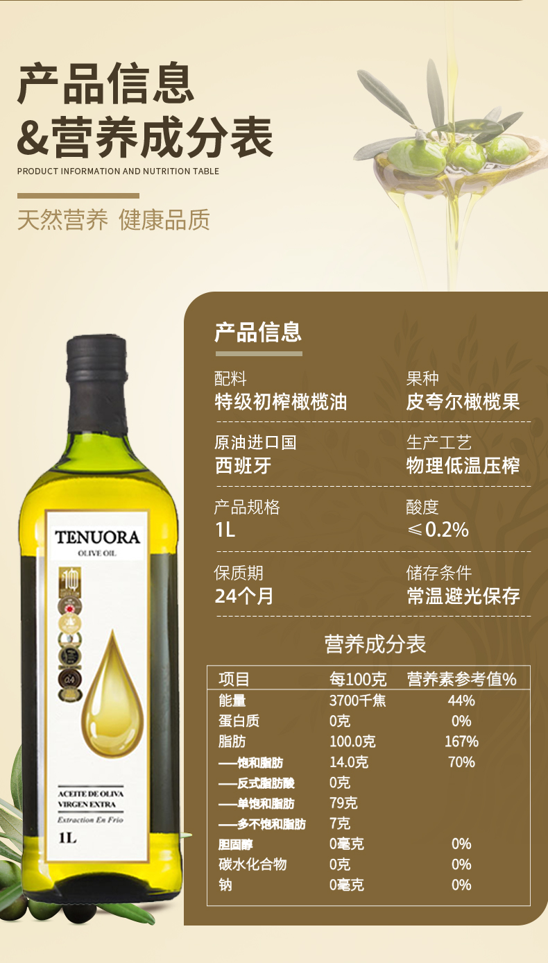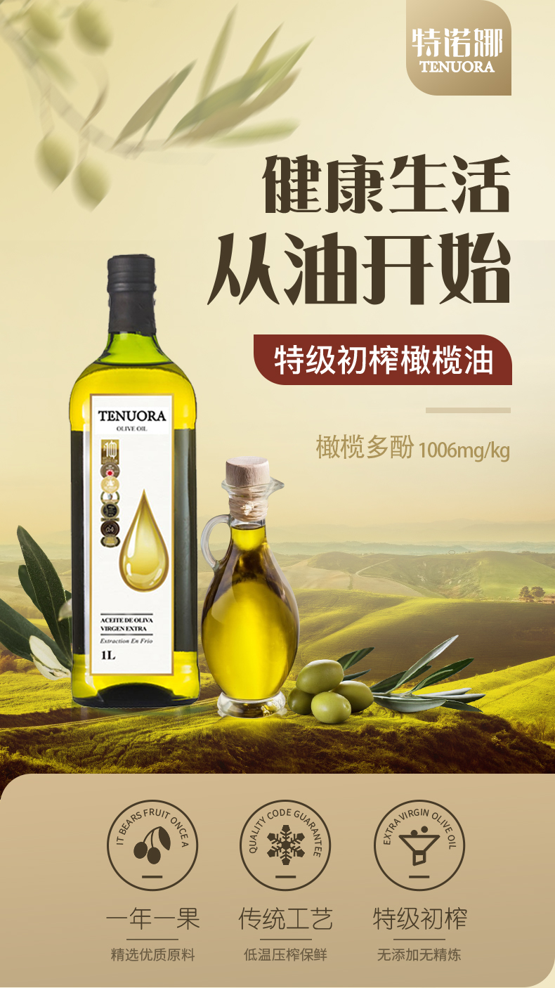 特诺娜特级初榨橄榄油(白金标)1L(单位:瓶) 象牙色
