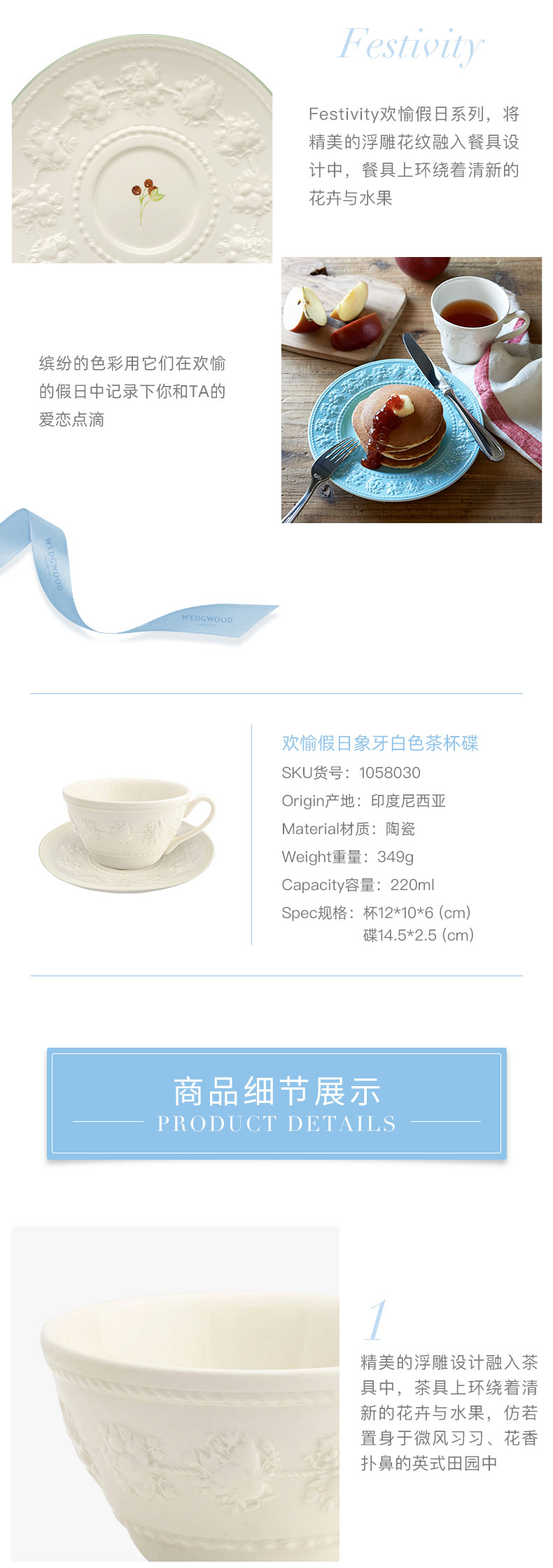WEDGWOOD 威基伍德1058030(单位:个) 欢愉假日象牙白色茶杯碟