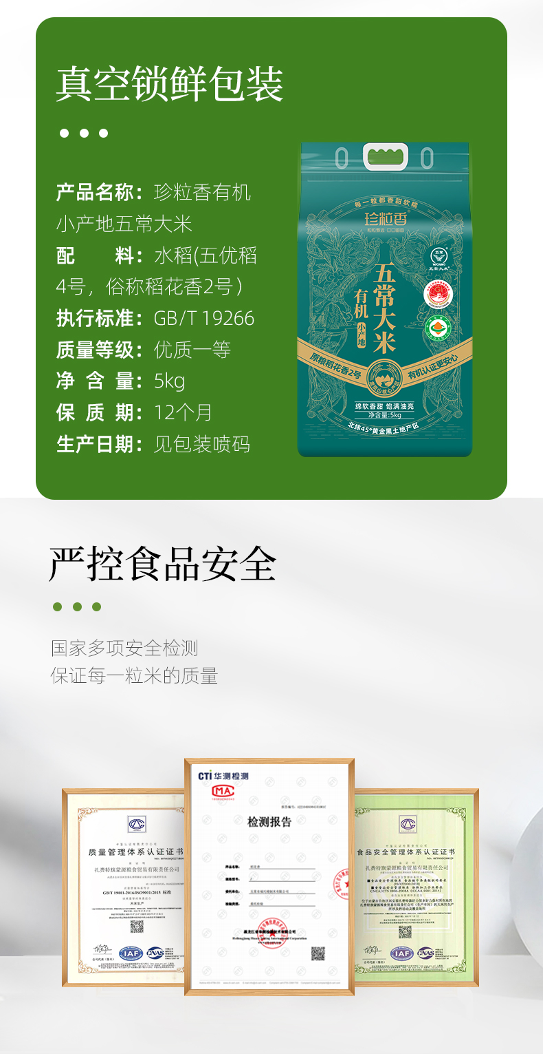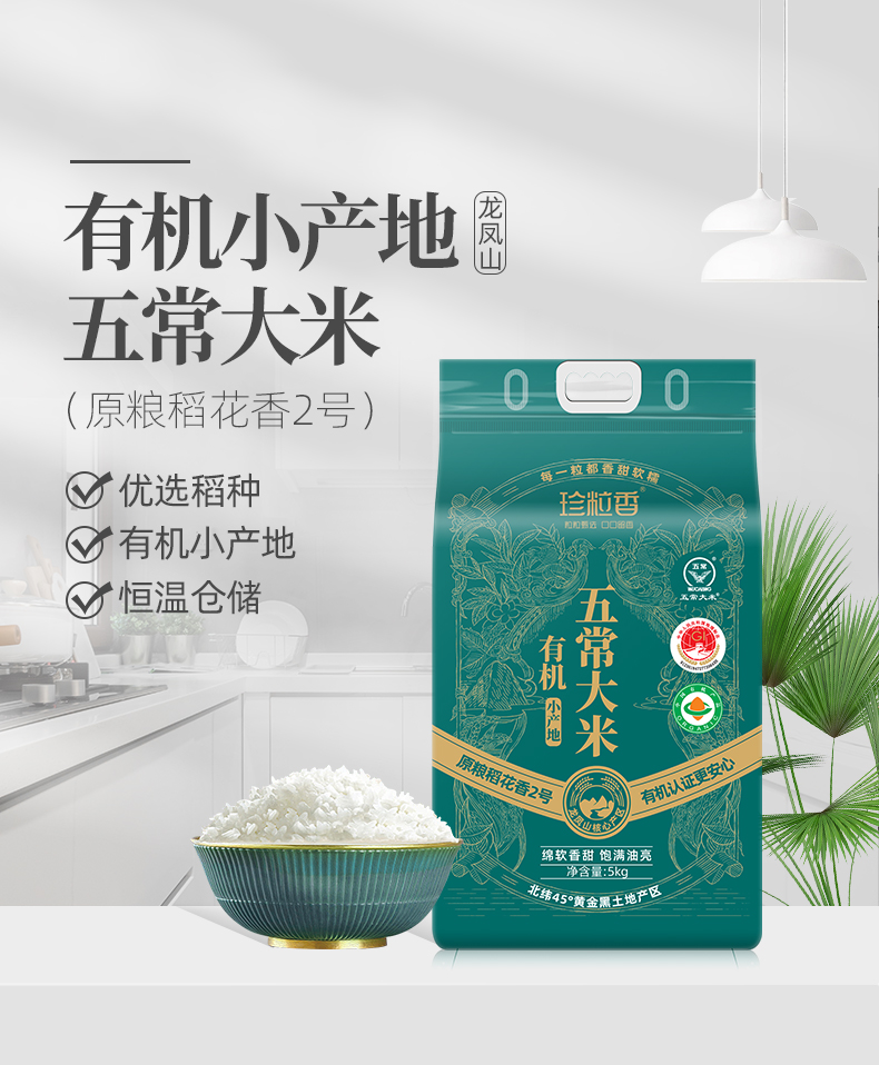 珍粒香有机小产地五常大米5kg (单位:包) 军绿色