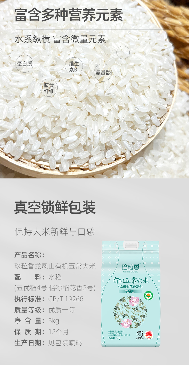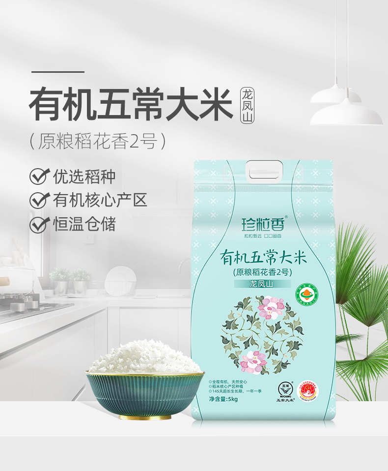 珍粒香有机龙凤山五常大米5kg(单位:包) 天蓝色