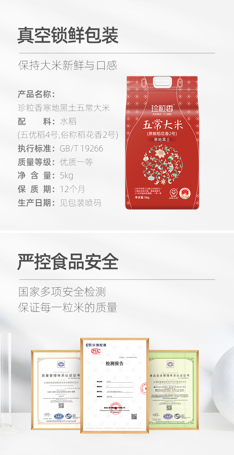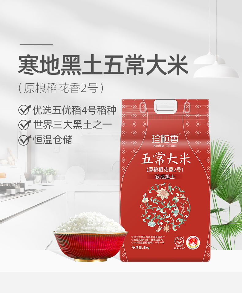 珍粒香寒地黑土五常大米5kg(单位:包) 黑色色