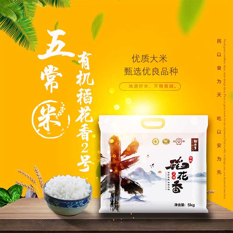 粮佰年五常 有机稻花香2号大米5kg 单位:袋 本白色