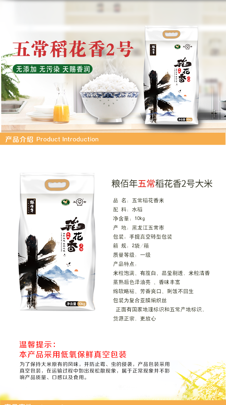 粮佰年 五常稻花香2号大米10kg 单位:袋 本白色