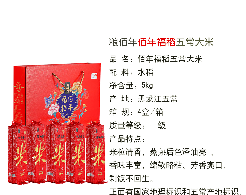 粮佰年 褔稻长粒香大米礼盒5kg 单位:盒 本白色