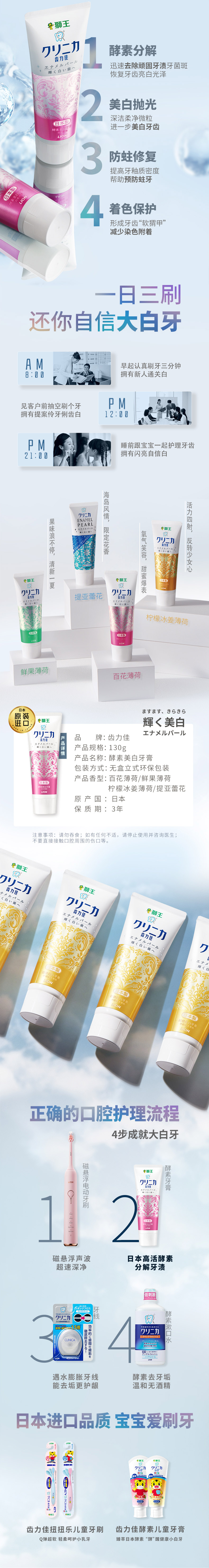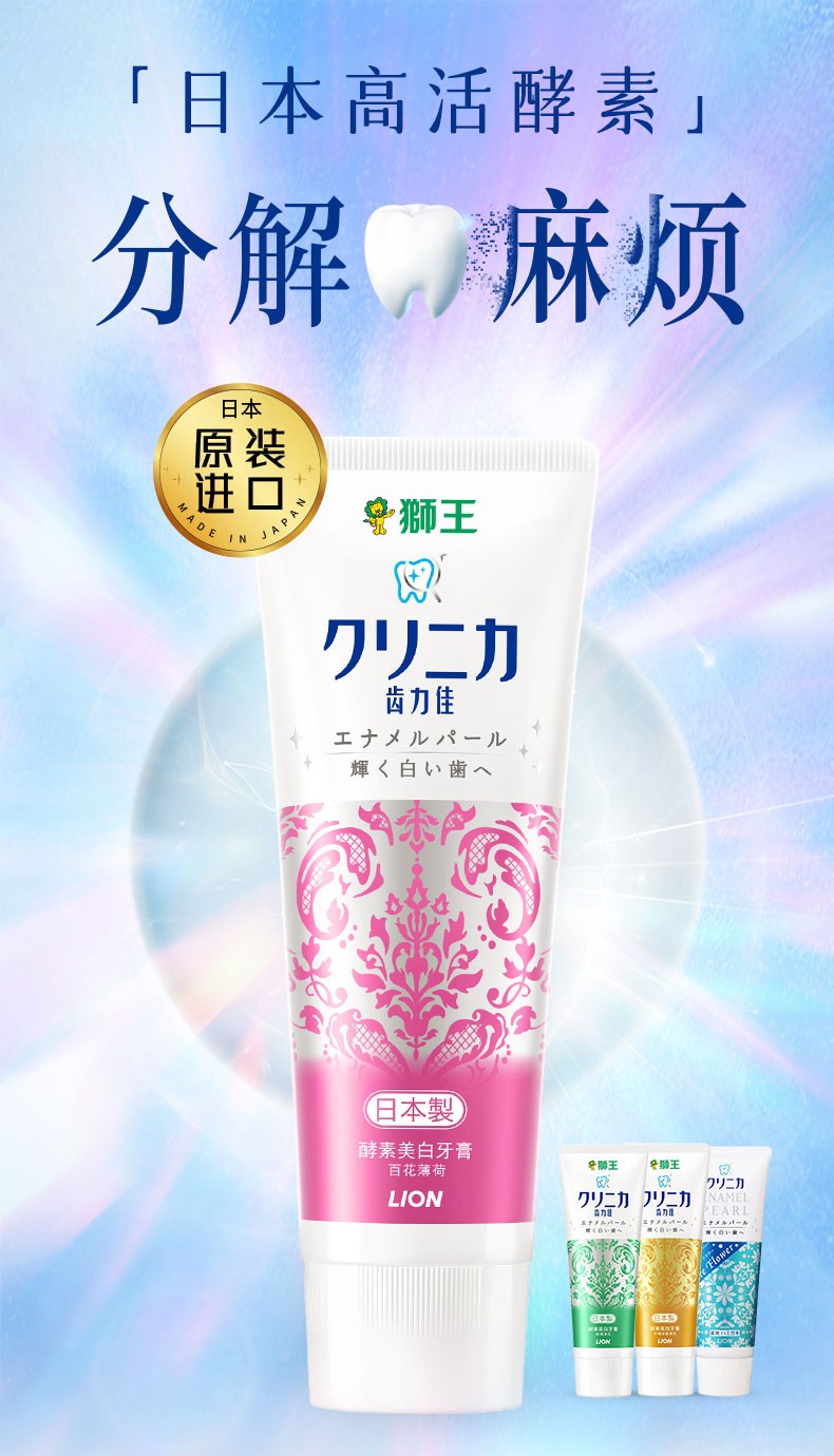 LION狮王齿力佳高活酵素美白牙膏 清新口气 亮白牙齿日本原装进口 柠檬冰姜130*3支