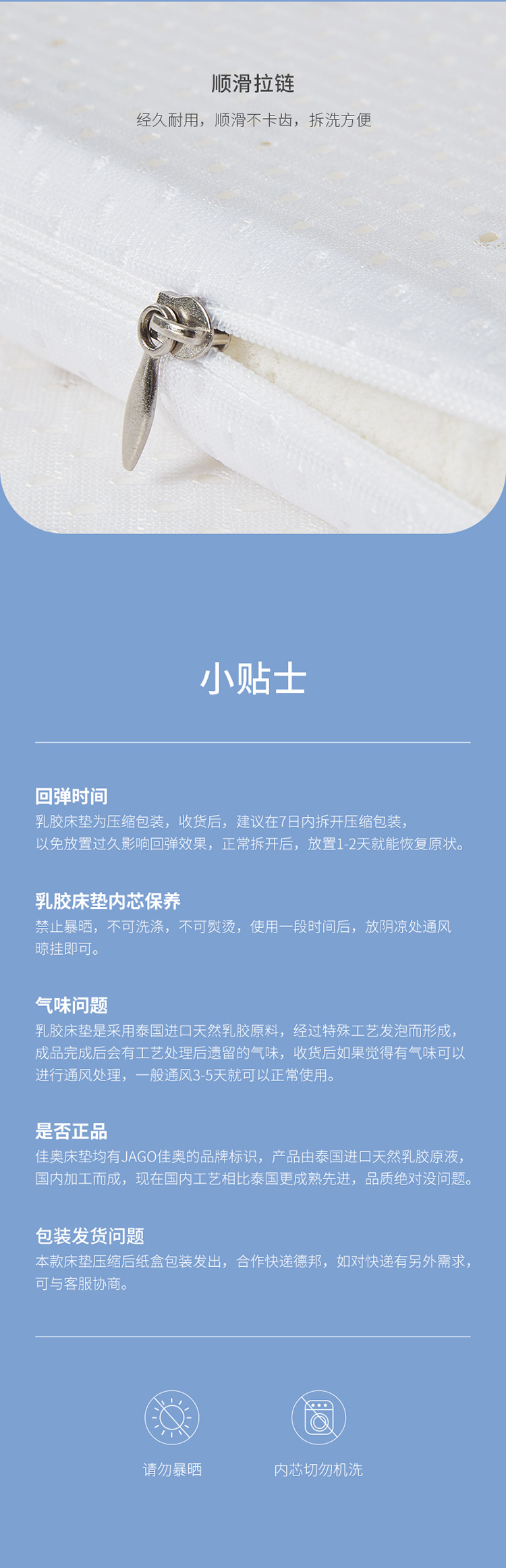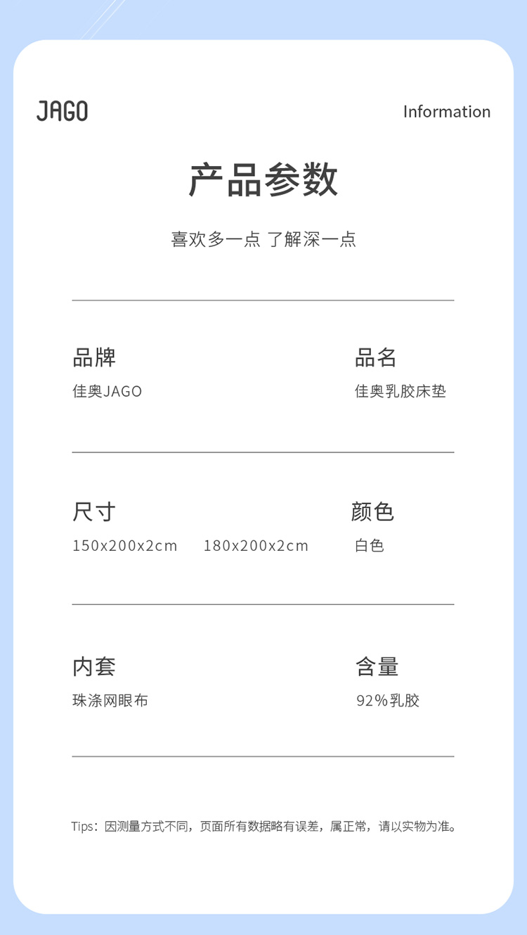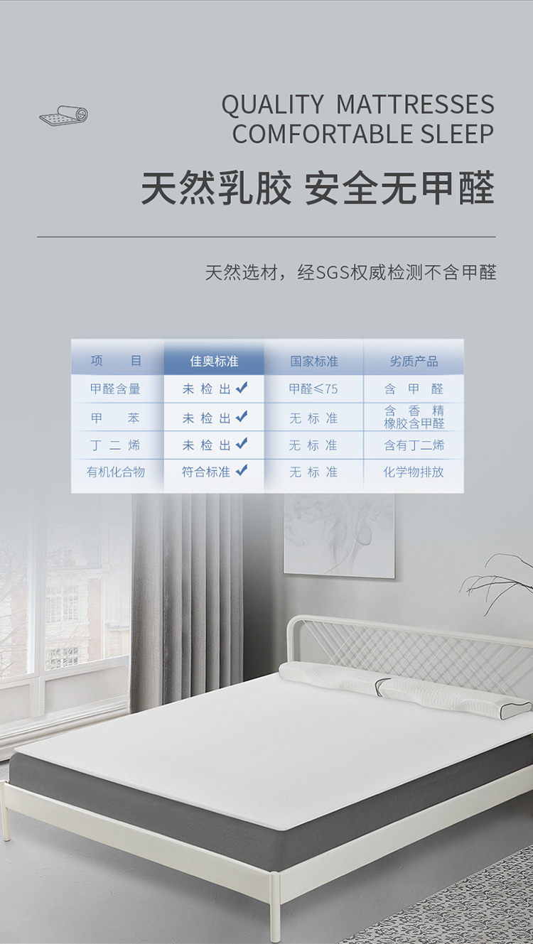 佳奥 泰国进口原液乳胶床垫【150*200*2cm】J27C02EW2 白色 单位:个 白色
