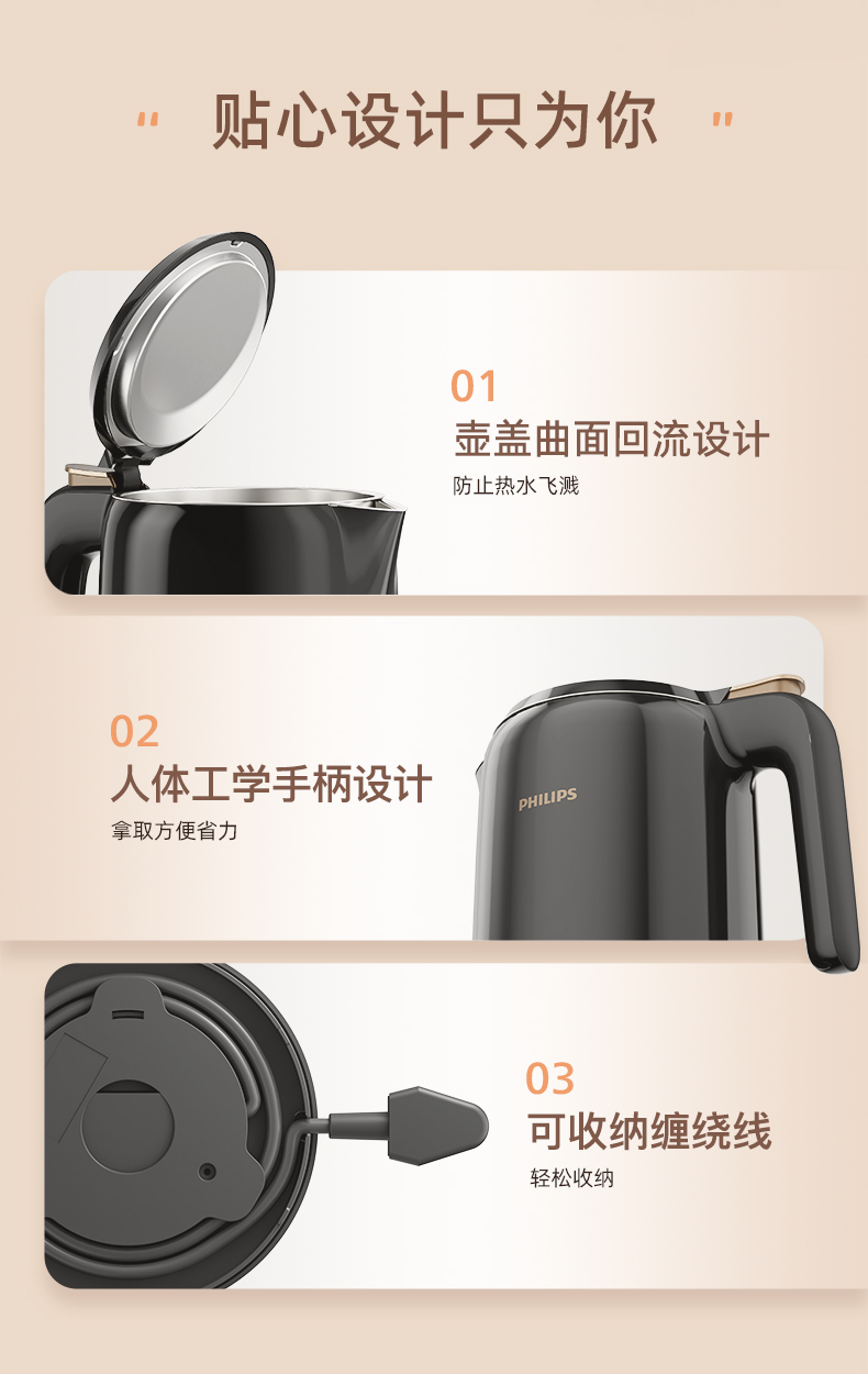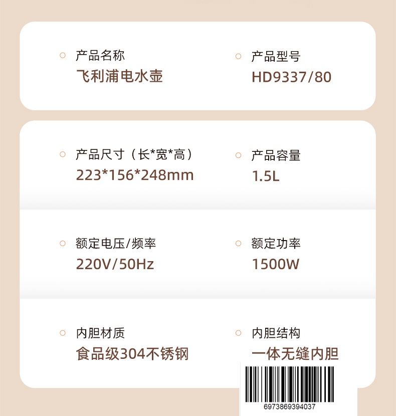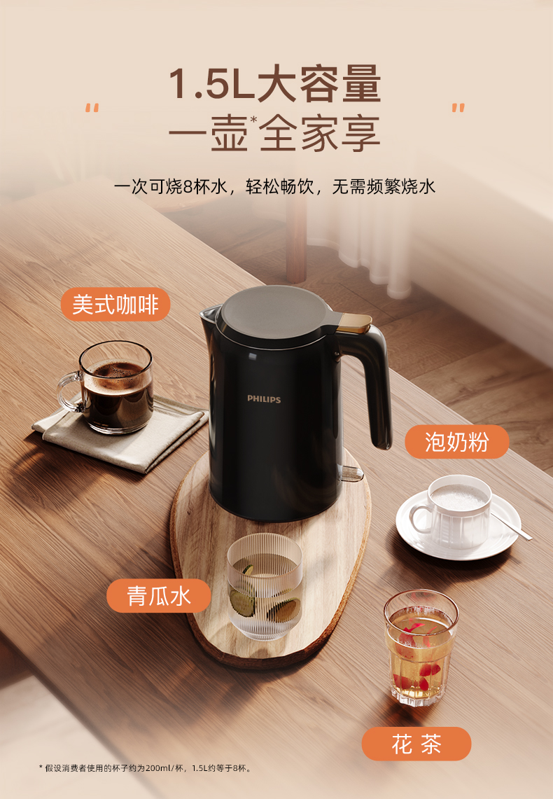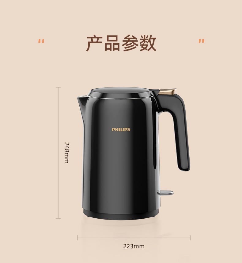 飞利浦(PHILIPS)电水壶1.5L HD9337/80/台 黑色