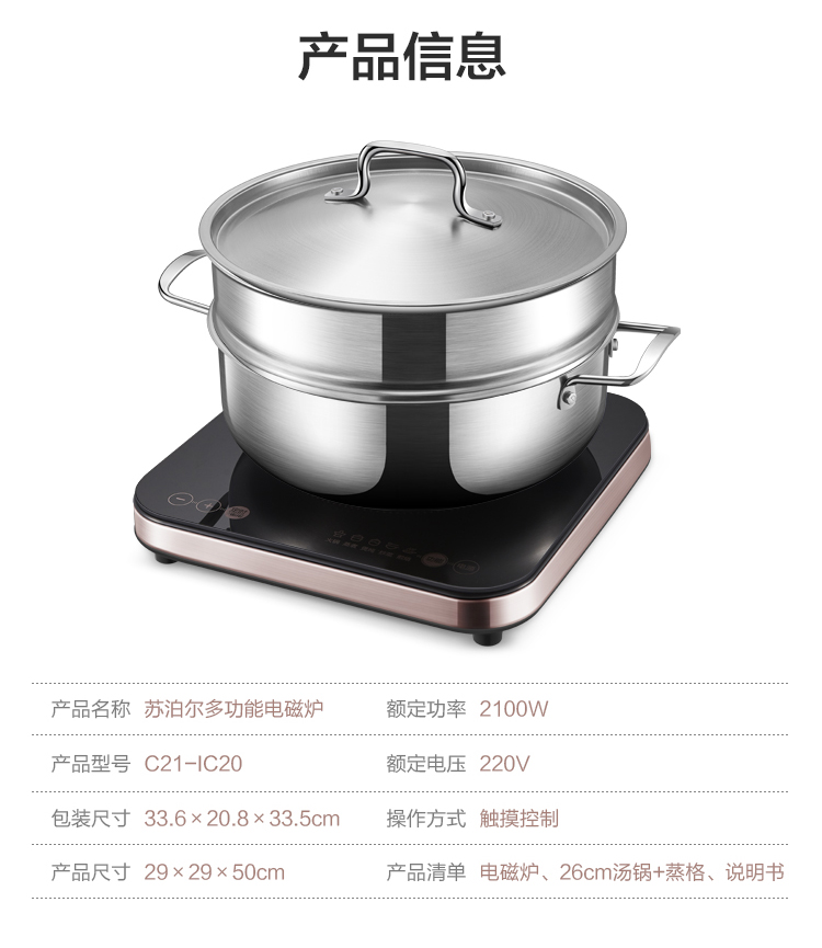 苏泊尔(SUPOR)HM匀猛火2100W多功能电磁炉C21-IC20/台 黑色
