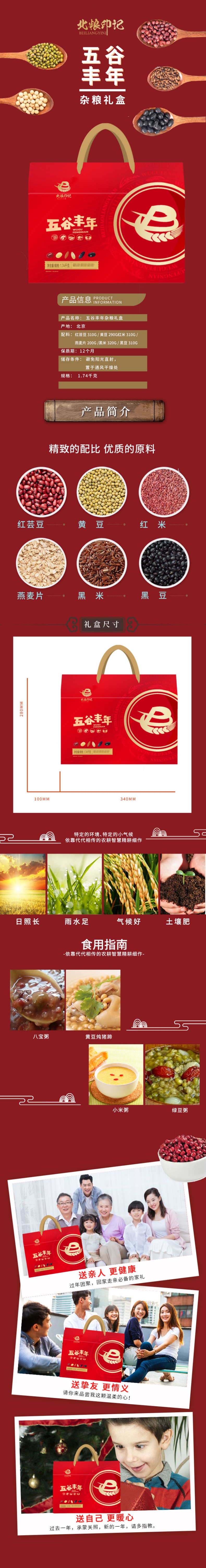 北粮印记五谷丰年杂粮礼盒1740g 单位:盒 红色