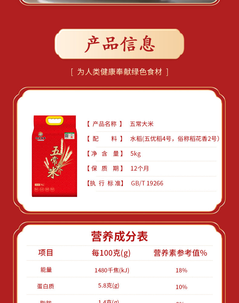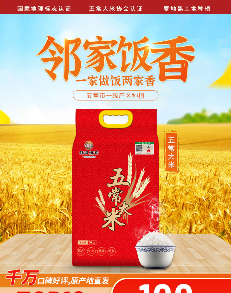 邻家饭香 五常大米 稻花香2号 5kg/袋一级产区LJFX133 拿铁色