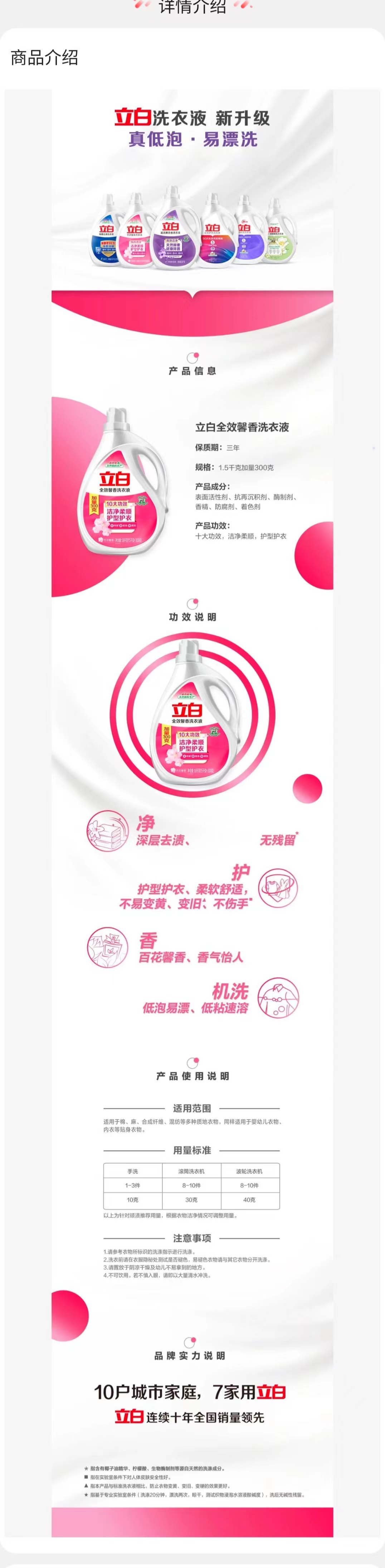 立白全效馨香洗衣液1.5kg+300g(单位:瓶) 佳人粉