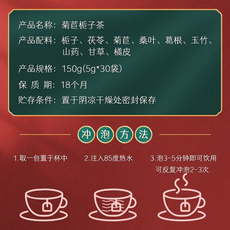 怡福寿菊苣栀子茶5g/袋*30袋 栀子茶5g/袋*30袋