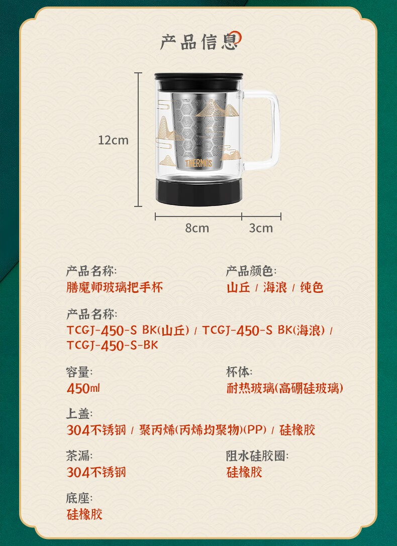 膳魔师简约玻璃杯TCGJ-450-S-BK(单位:个) 黑色