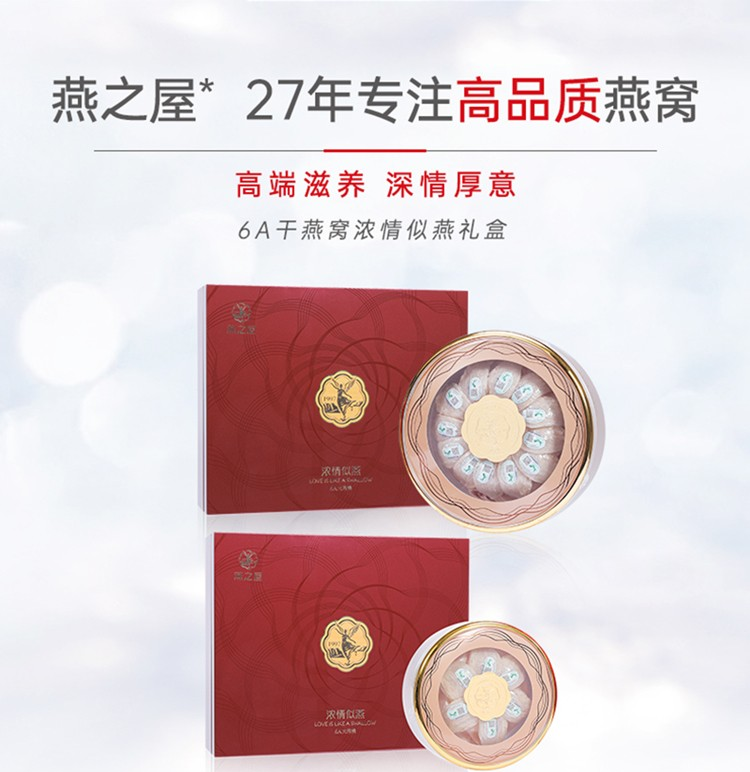 燕之屋 6A干燕窝浓情似燕 圆筒100g 礼盒装 红色(单位:盒)
