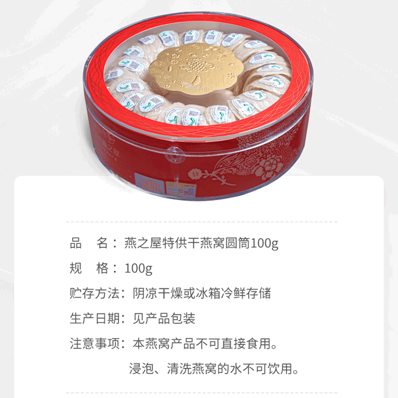燕之屋.碗燕燕窝(特供干燕窝圆筒100g) 红色